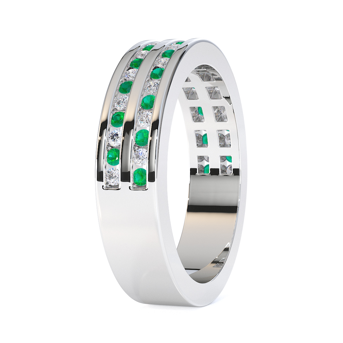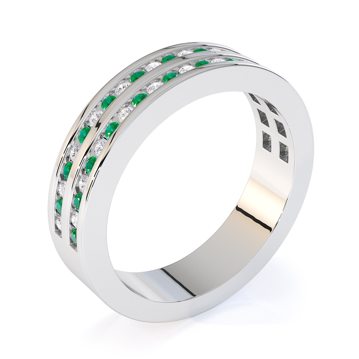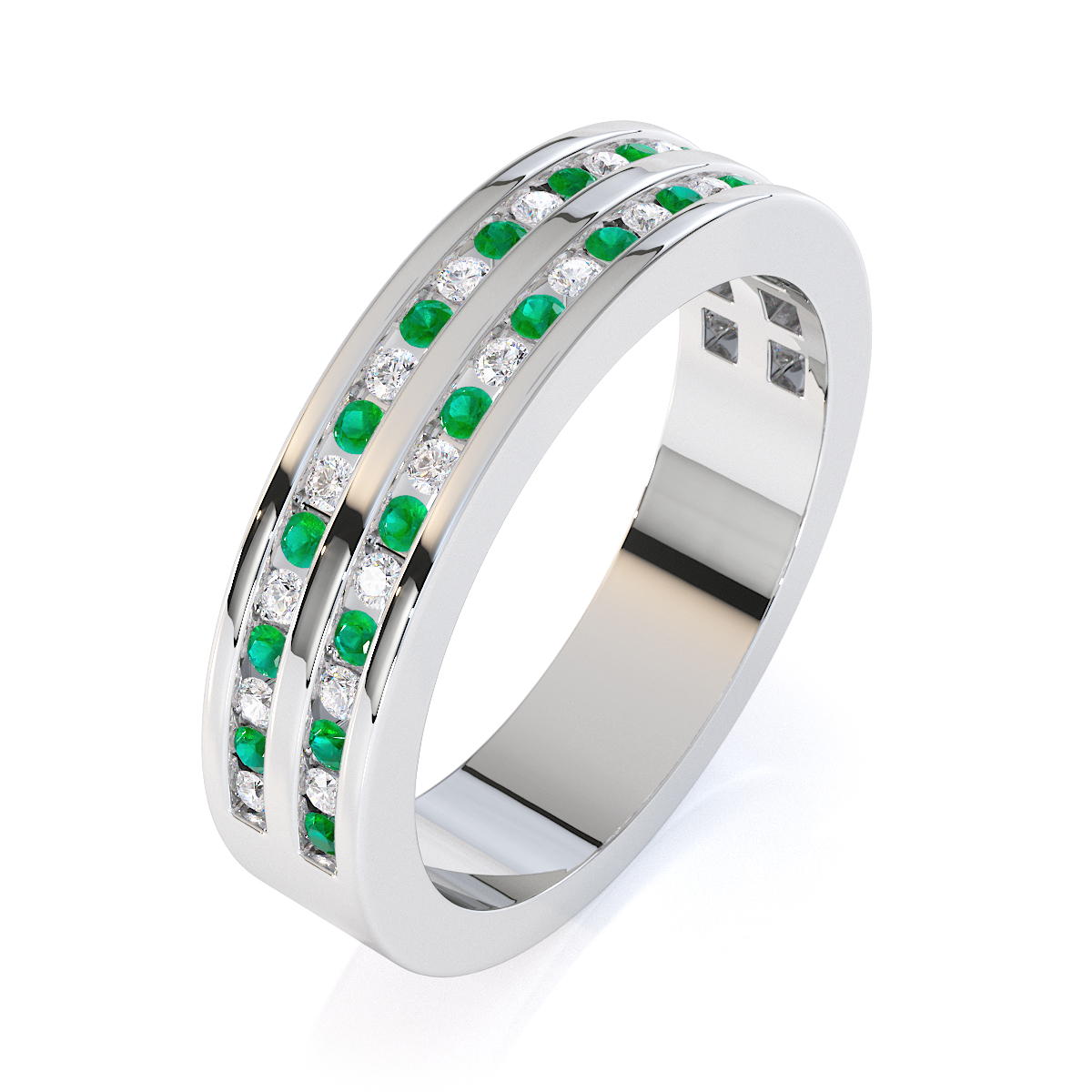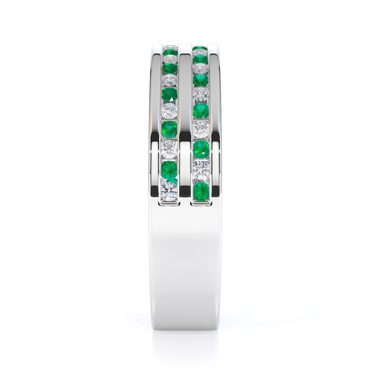 Channel Set Diamond and Emerald Half Eternity Ring 0427
