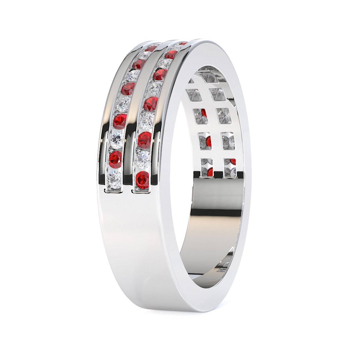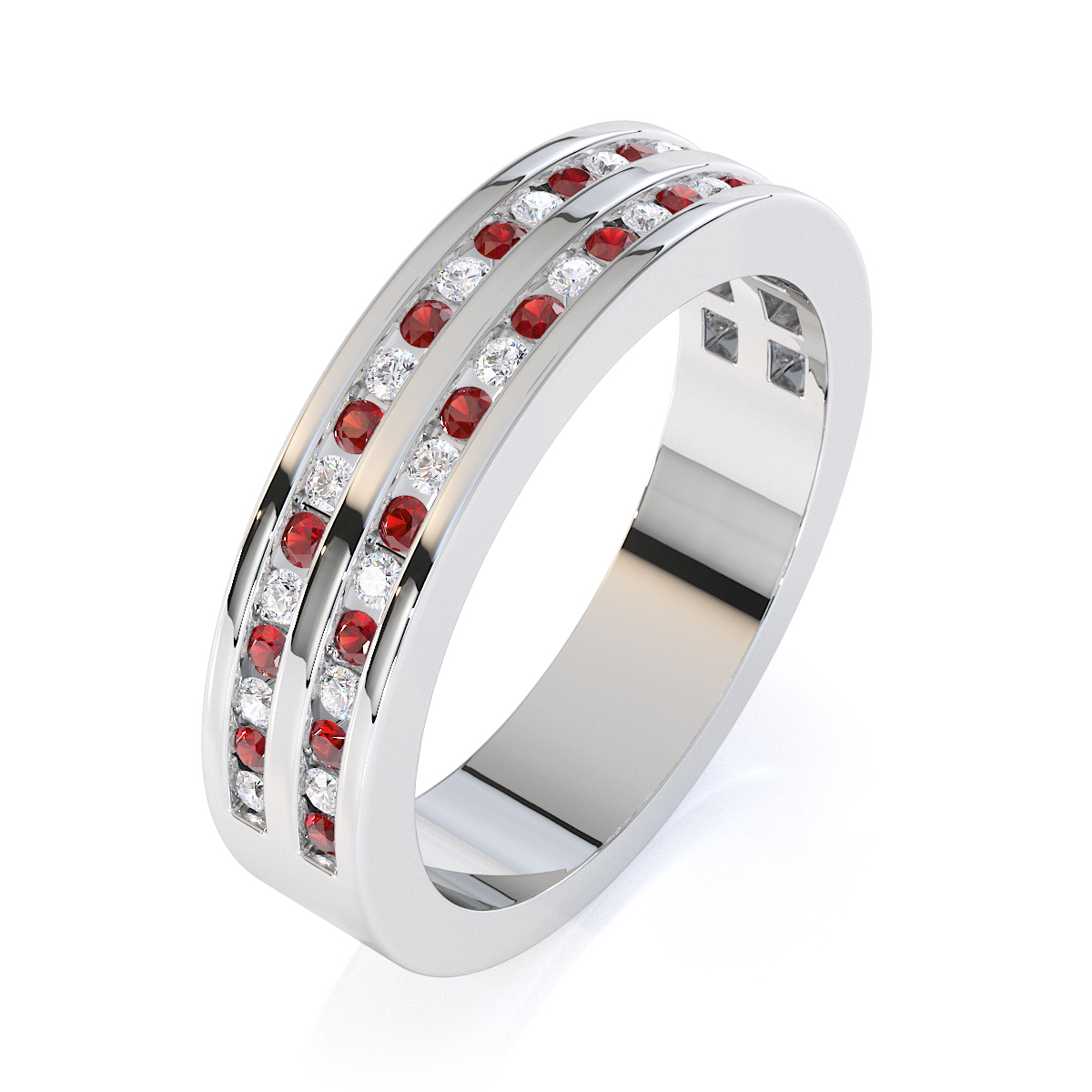Channel Set Diamond and Garnet Half Eternity Ring 0427