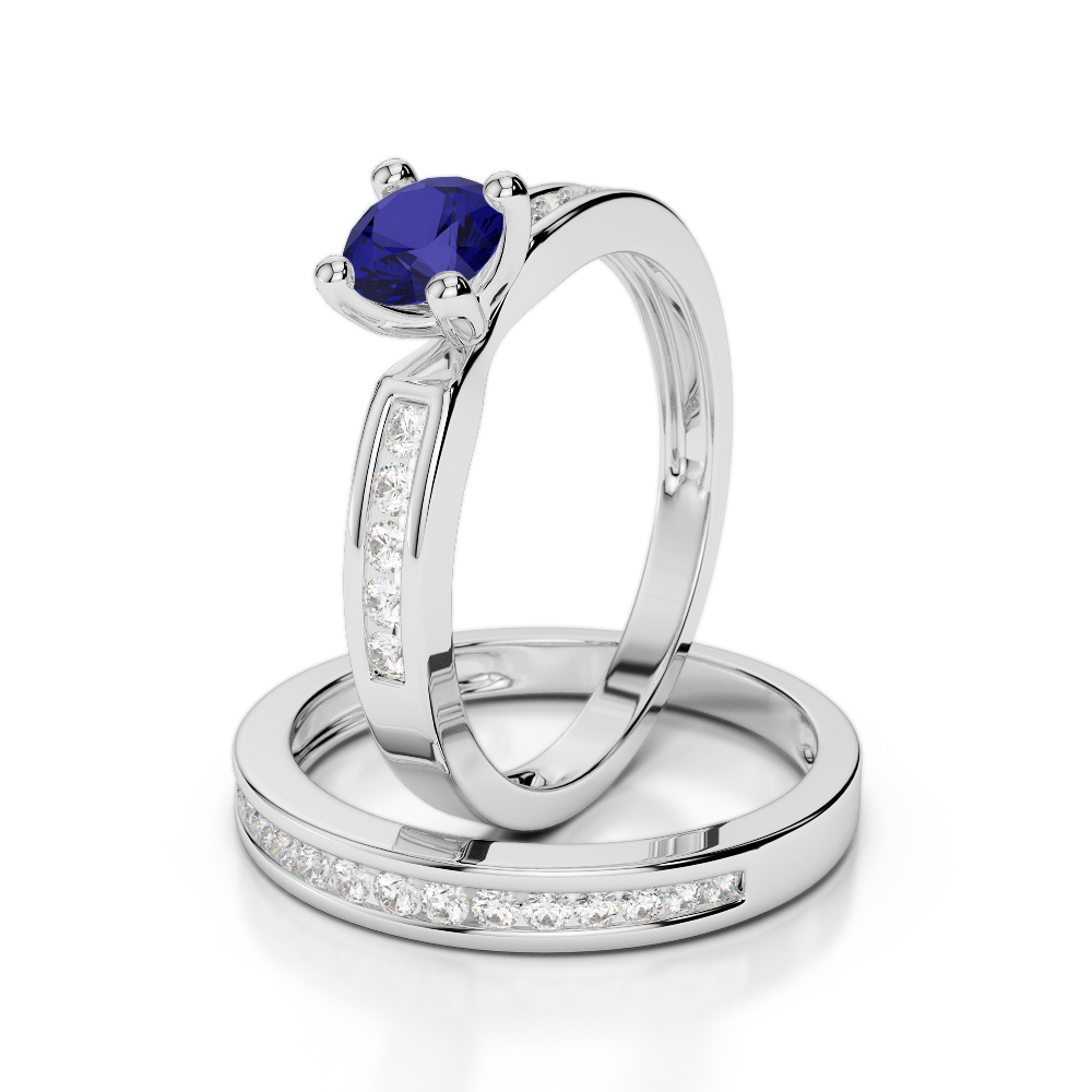 Channel Set Diamond & Prong Set Blue Sapphire Bridal Set Ring 0312