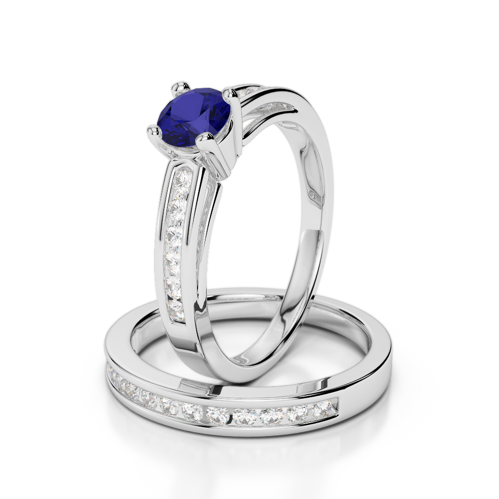 Channel Set Diamond & Prong Set Blue Sapphire Bridal Set Ring 0314