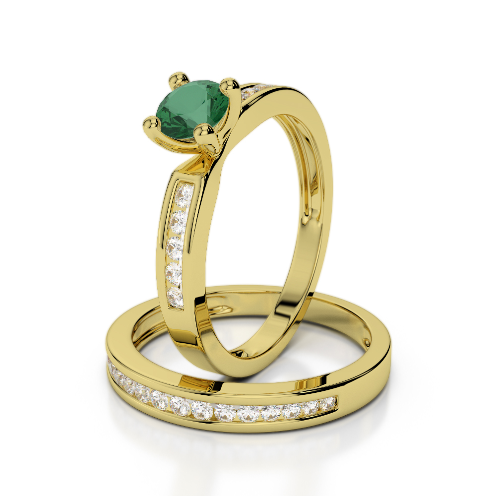 Channel Set Diamond & Prong Set Emerald Bridal Set Ring 0312