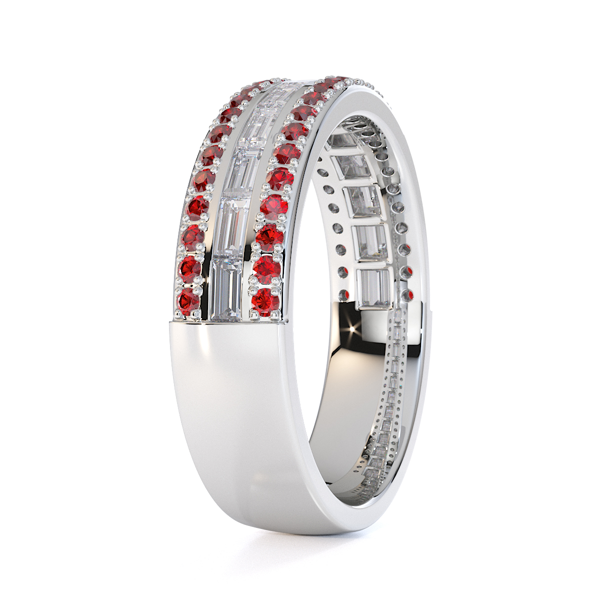 Channel Set Diamond & Prong Set Garnet Half Eternity Ring 0433