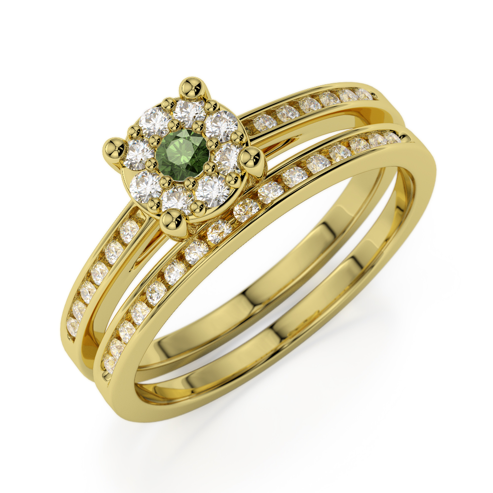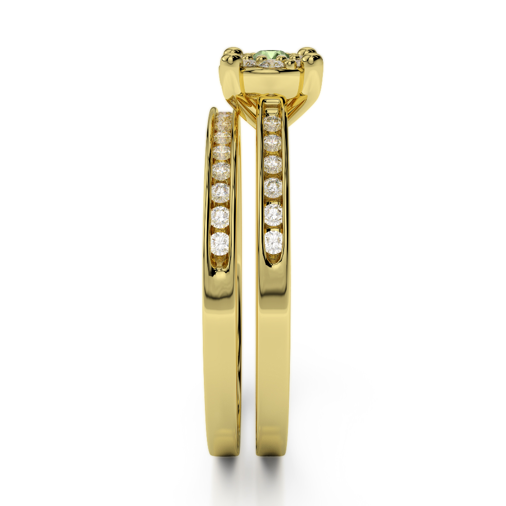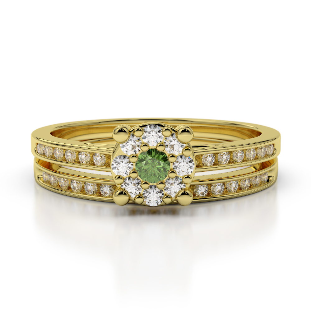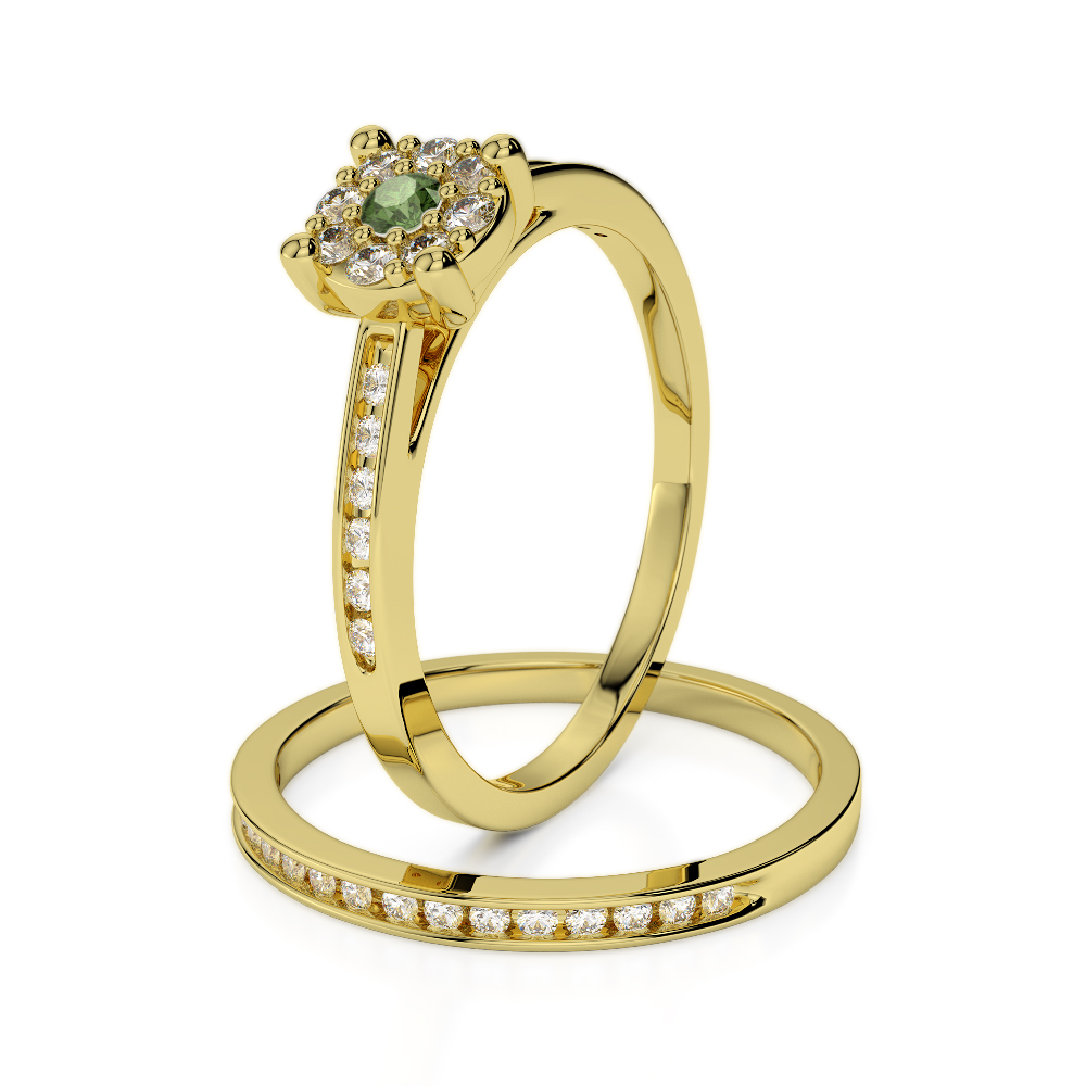 Channel Set Diamond & Prong Set Green Tourmaline Bridal Set Ring 0291