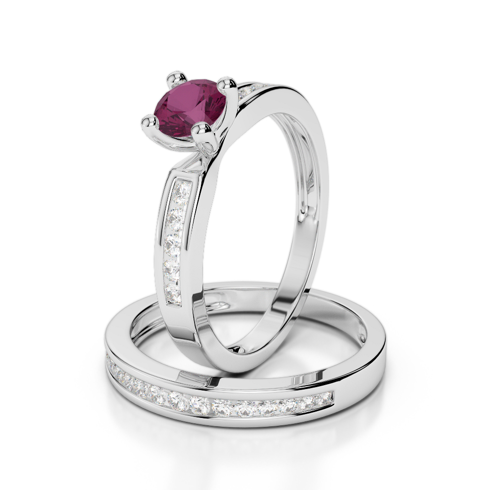 Channel Set Diamond & Prong Set Ruby Bridal Set Ring 0312