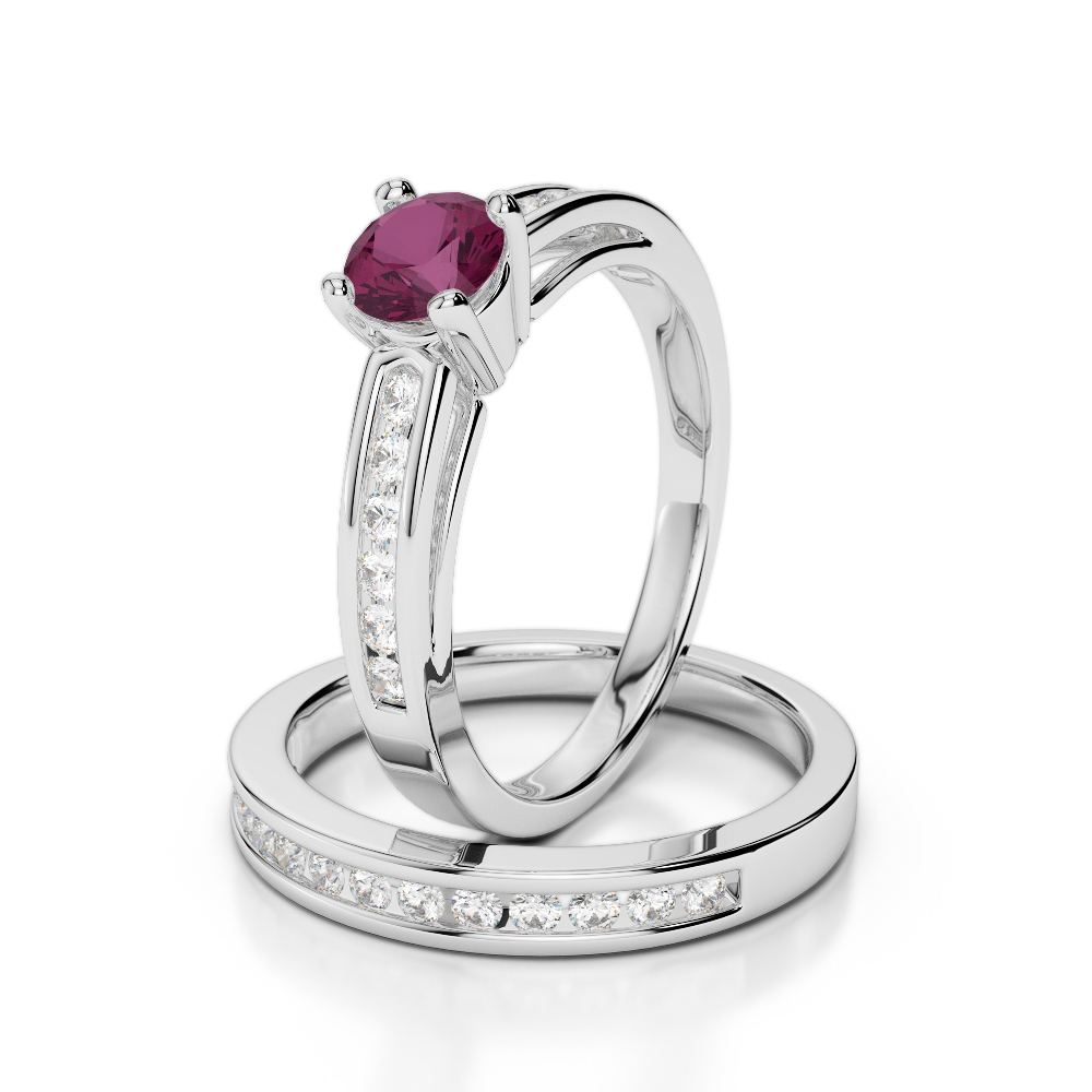 Channel Set Diamond & Prong Set Ruby Bridal Set Ring 0314