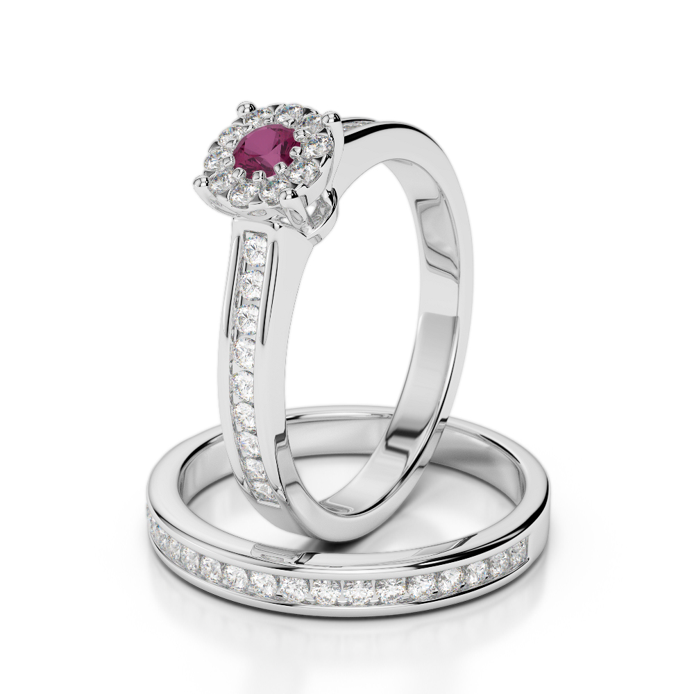 Channel Set Diamond & Prong Set Ruby Bridal Set Ring 0323