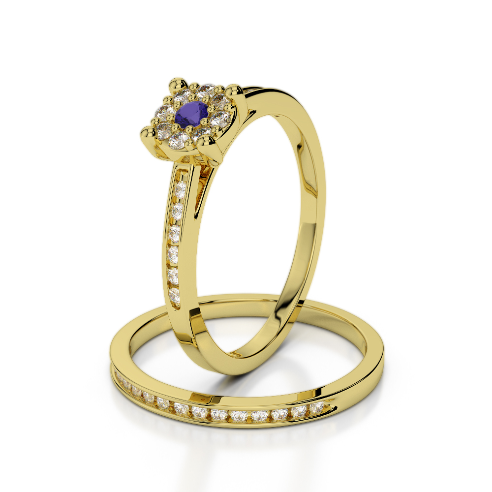 Channel Set Diamond & Prong Set Tanzanite Bridal Set Ring 0291