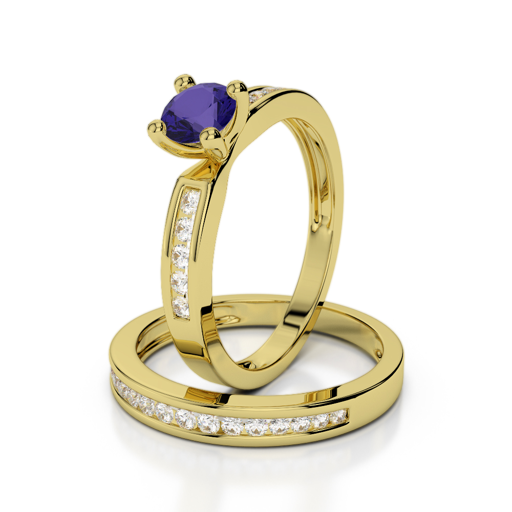 Channel Set Diamond & Prong Set Tanzanite Bridal Set Ring 0312