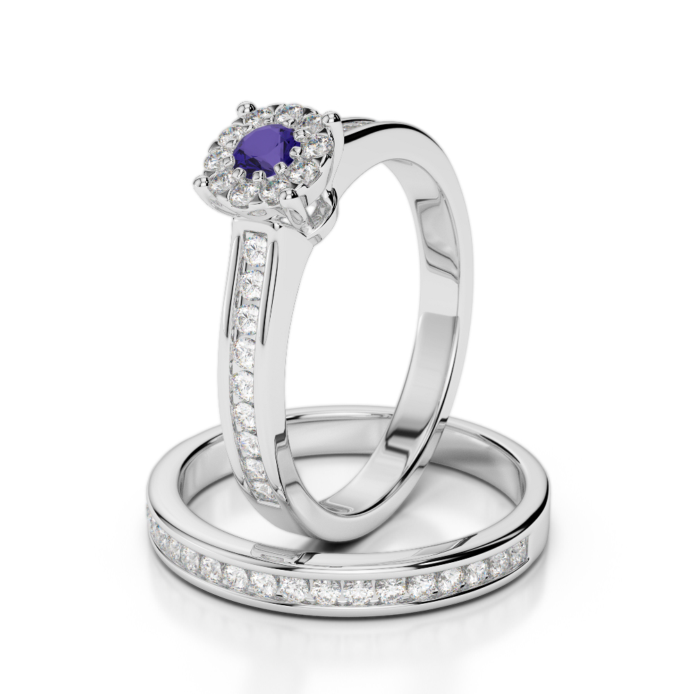 Introducing our exquisite Bridal Set Ring with Prong and Channel Setting, a perfect symbol of eternal love and commitment. This stunning tanzanite bridal set and wedding band set is designed to captivate and enchant. Crafted with meticulous attention to detail, the sparkling diamonds are elegantly arranged in a combination of prong and channel settings, creating a breathtaking display of brilliance. With its timeless design and exceptional craftsmanship, this bridal set is sure to make your special day even more memorable.