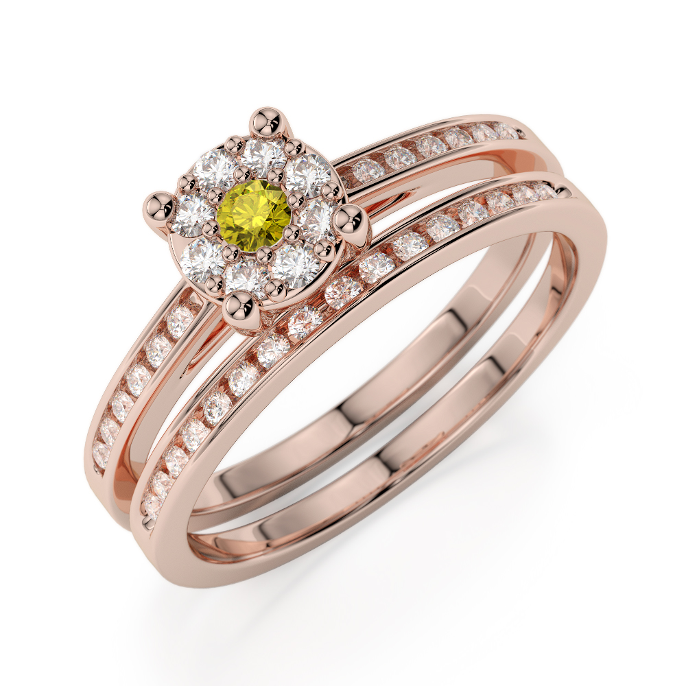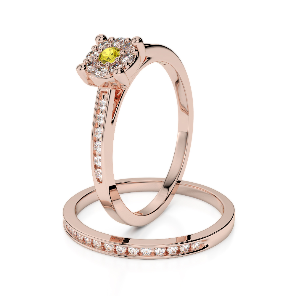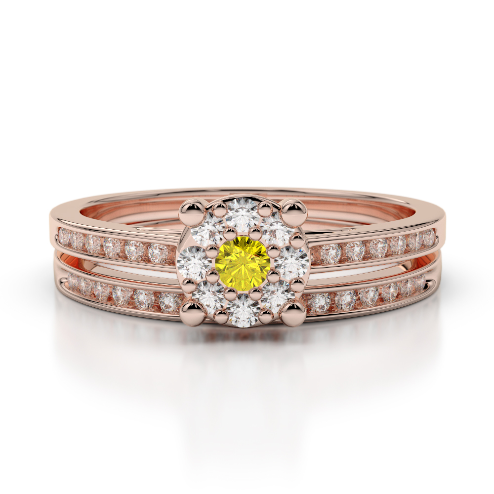 Channel Set Diamond & Prong Set Yellow Sapphire Bridal Set Ring 0291