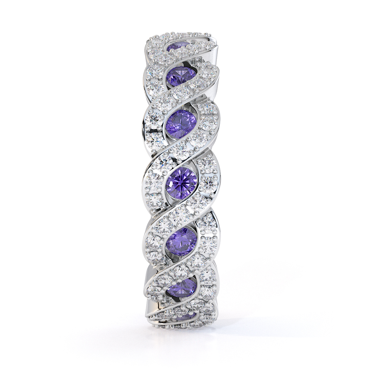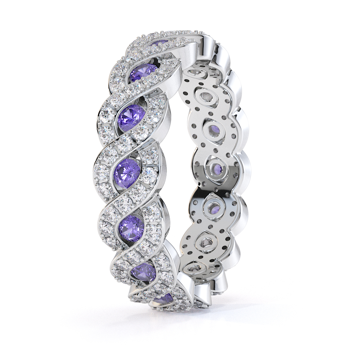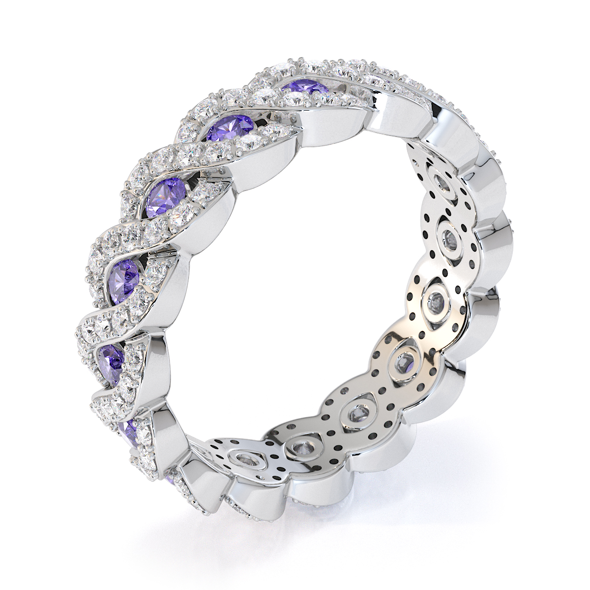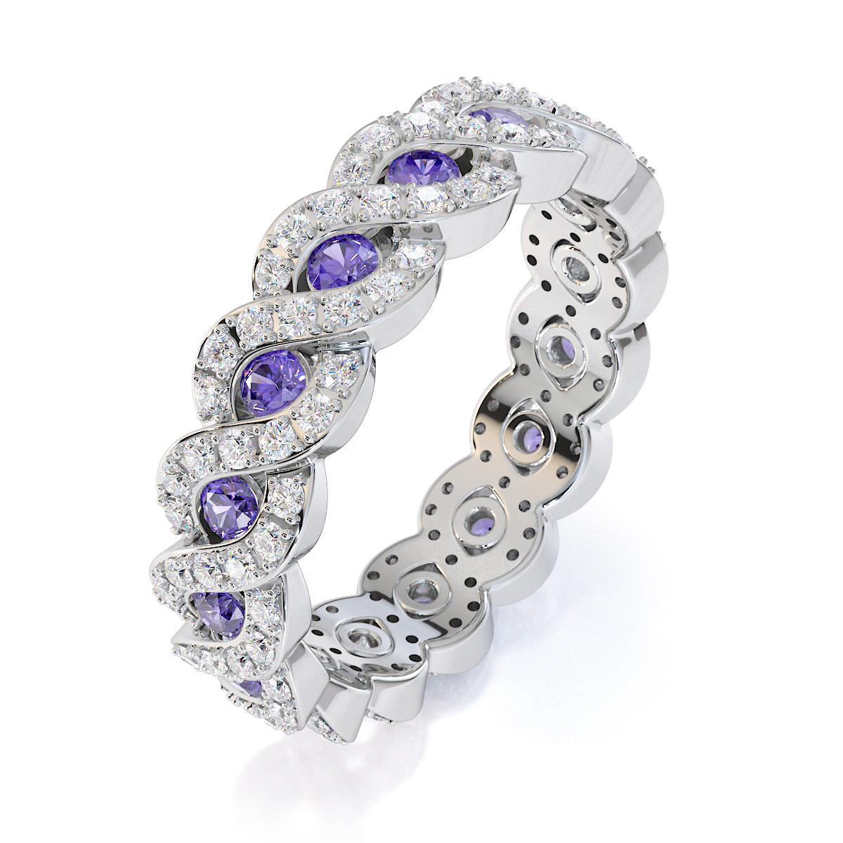 Channel Set Tanzanite & Prong Set Diamond Full Eternity Ring 0456