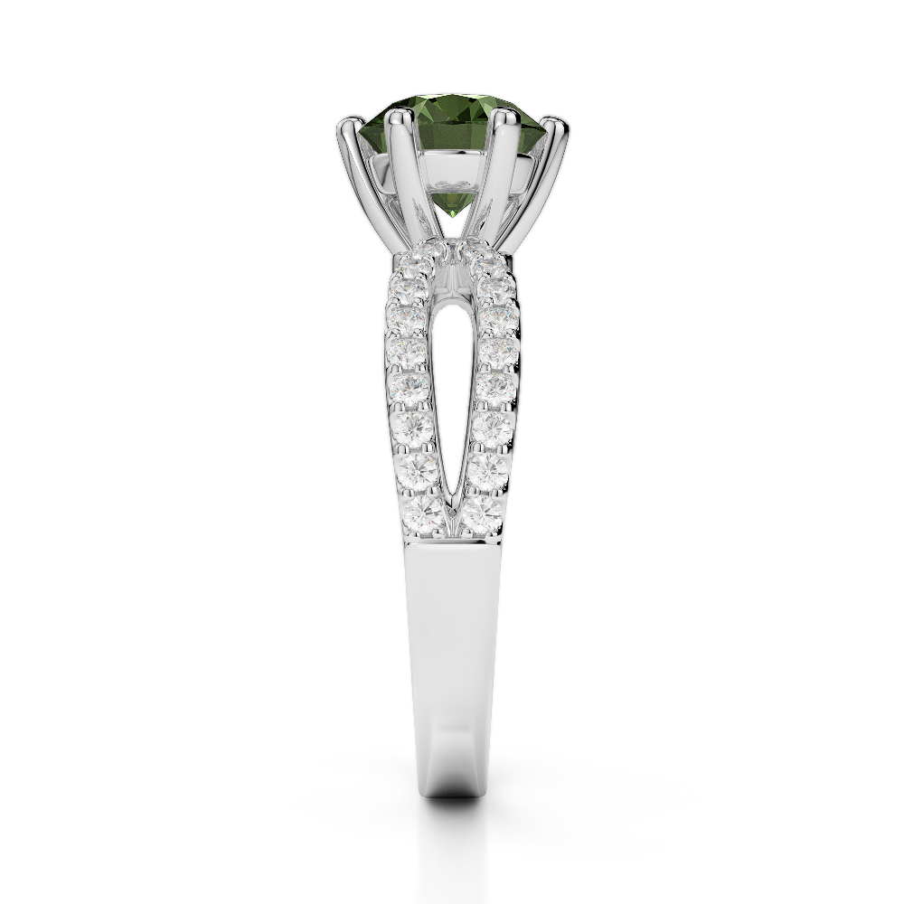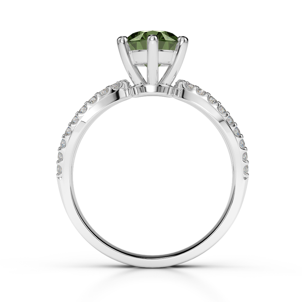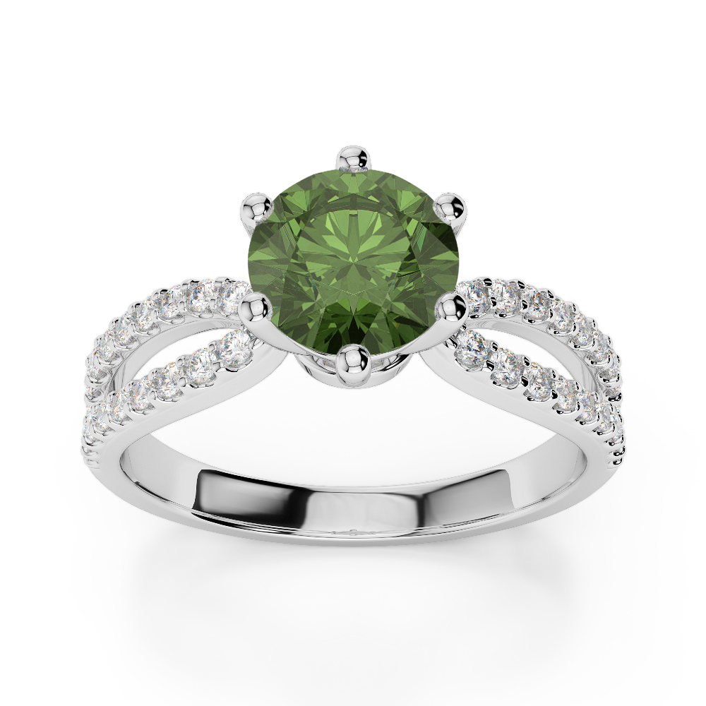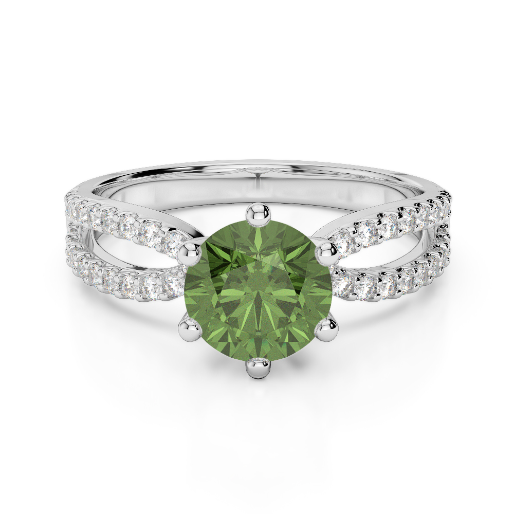 Indulge in the allure of our Round Green Tourmaline And Diamond Engagement Ring, featuring a rich Round Green Tourmaline secured in classic prong settings. A halo of brilliant diamonds surrounds the center stone, enhancing its vibrant hue and creating a captivating sparkle from every angle.
