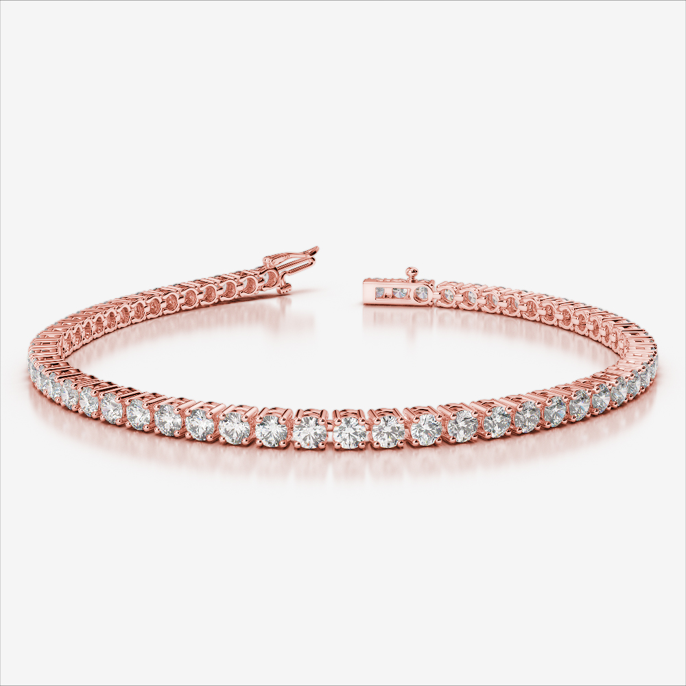 This diamond tennis bracelet highlights the natural charm of round-cut diamonds, held delicately in prongs that maximize their brilliance and allow them to shine effortlessly.