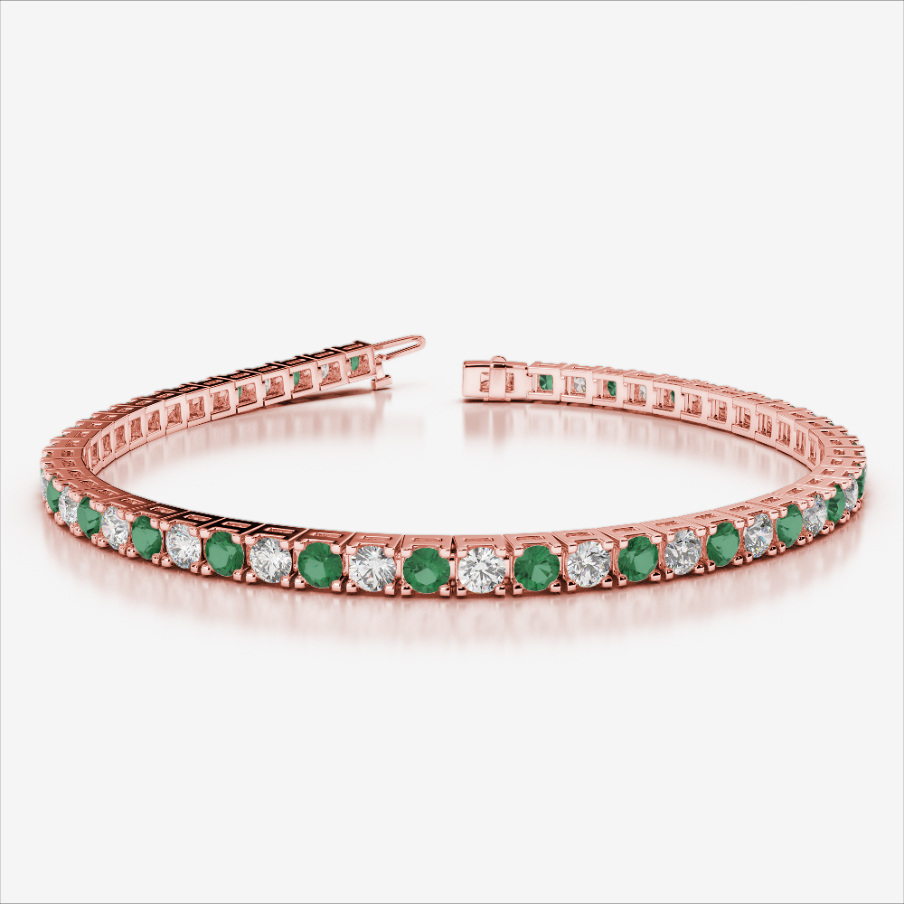 Step into elegance with our prong-set round-cut emerald and diamond tennis bracelet. Designed to enchant, this piece blends the natural beauty of emeralds with the radiance of diamonds. A true expression of refined taste, it complements every outfit. Whether gifted or self-selected, this bracelet becomes a cherished part of your collection—graceful, glowing, and unforgettable.