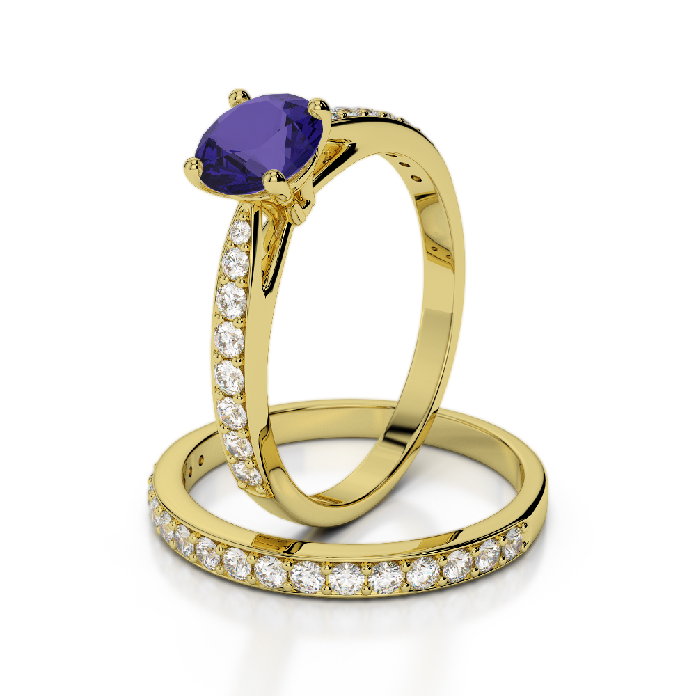 These stunning tanzanite bridal set rings feature round brilliant-cut diamonds that sparkle and shine with every hand movement. Handcrafted by experienced jewellery craftsmen, these diamond-studded rings are sure to attract admiring glances. Choose from the finest gemstones and be cherished for years. These naturally mined, conflict-free diamonds are beautifully designed to fit together, adding comfort and style to your look. Choose these beautiful engagement and wedding rings for a memorable and stylish ensemble.