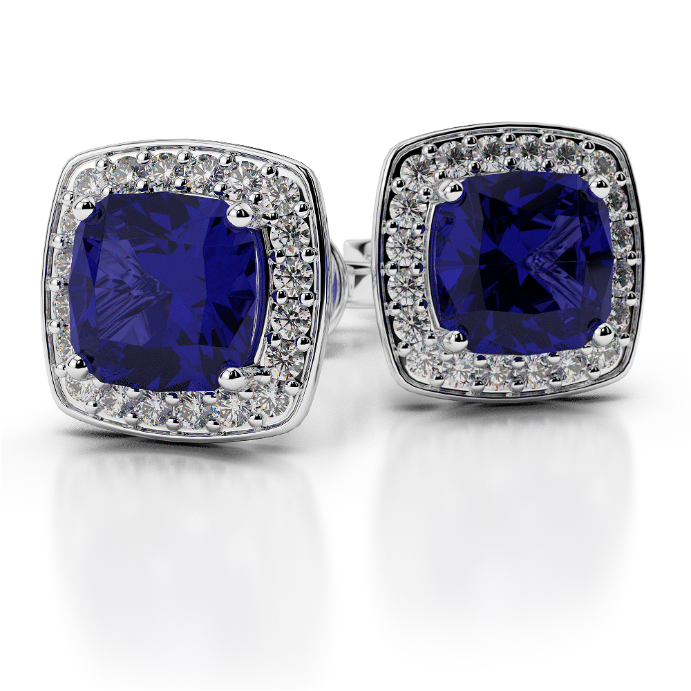 Cushion Shape Blue Sapphire and Diamond Earrings 0466