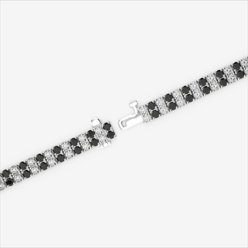 Give the gift of timeless elegance with this prong-set double-row black diamond and diamond bracelet. A graceful expression of love.