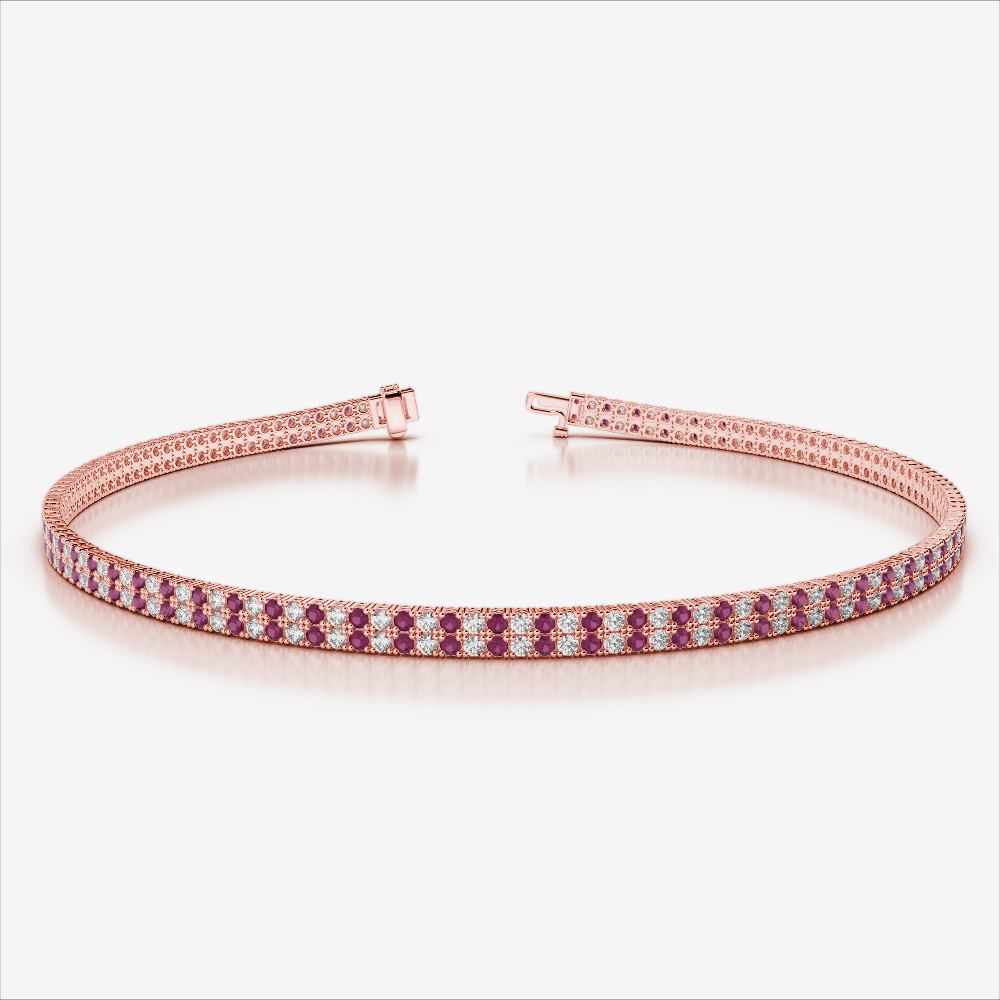 Double Row Diamond and Ruby Bracelet 0736