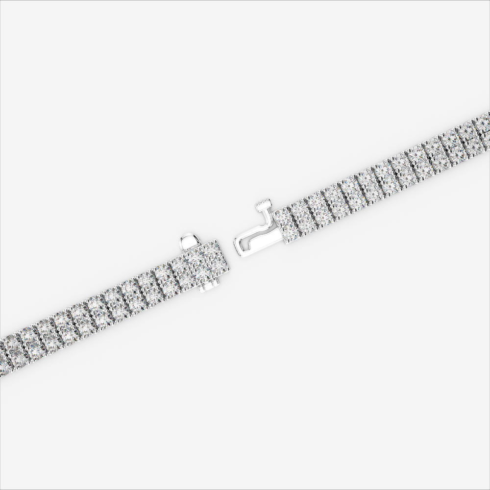 This Double Row Round Cut Diamond Tennis Bracelet is a refined expression of luxury. Each prong set diamond is hand-selected for brilliance, forming a continuous, sparkling band that embodies timeless grace and exquisite craftsmanship.