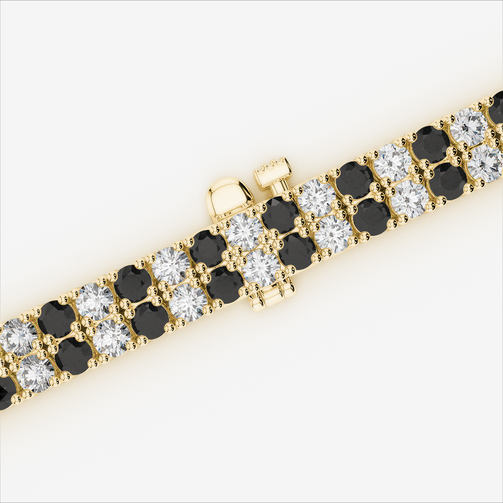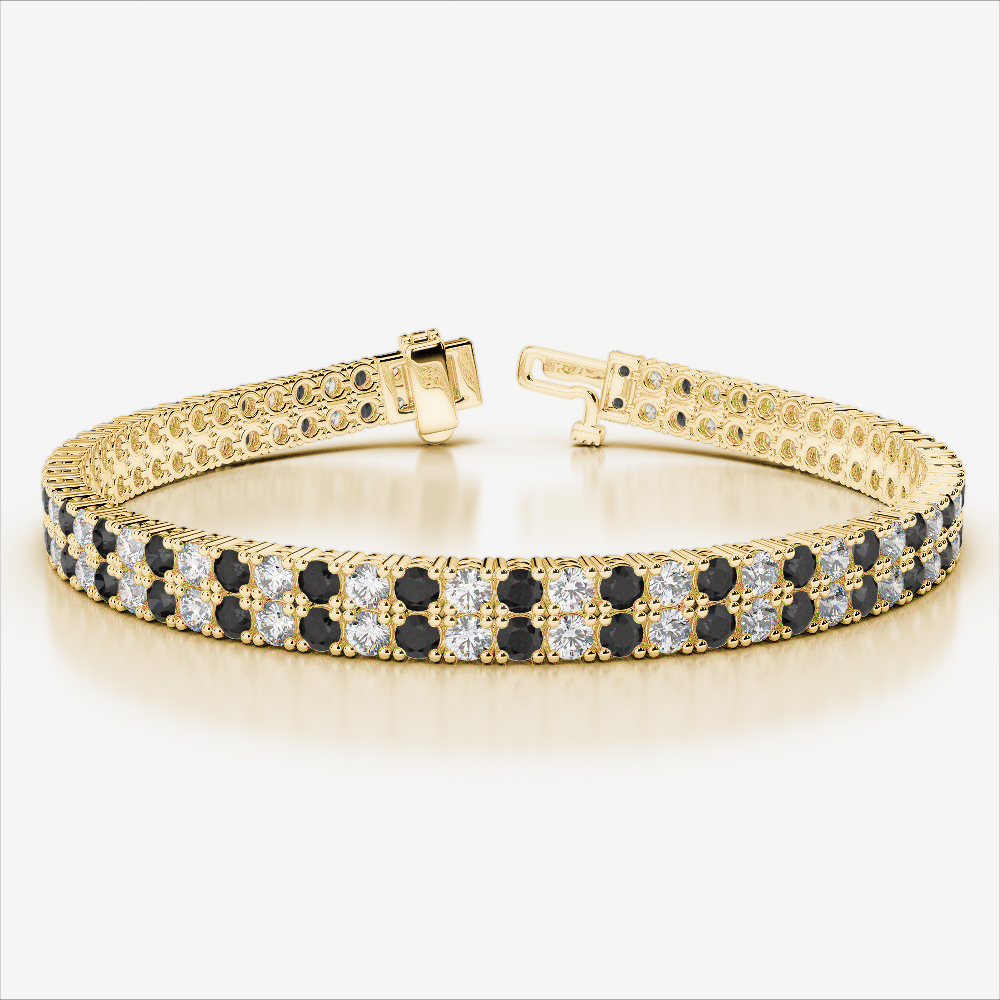 Elevate your collection with our Double Row Pave Set black diamond and diamond bracelet. The prong-set round-cut diamonds and black diamonds shine with remarkable clarity, delivering classic elegance for modern women. Whether worn solo or layered, this bracelet is an enduring token of grace and celebration.