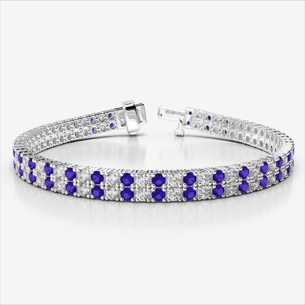 Double Row Pave Set Tanzanite & Diamond Bracelet 0743