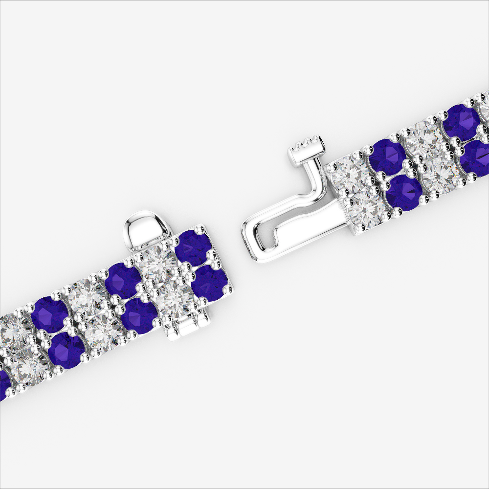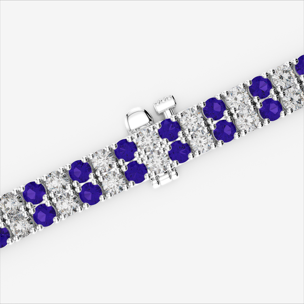 Elevate your collection with our Double Row Pavé Set Tanzanite and diamond bracelet. The prong-set round-cut diamonds and tanzanite shine with remarkable clarity, delivering classic elegance for modern women. Whether worn solo or layered, this bracelet is an enduring token of grace and celebration.