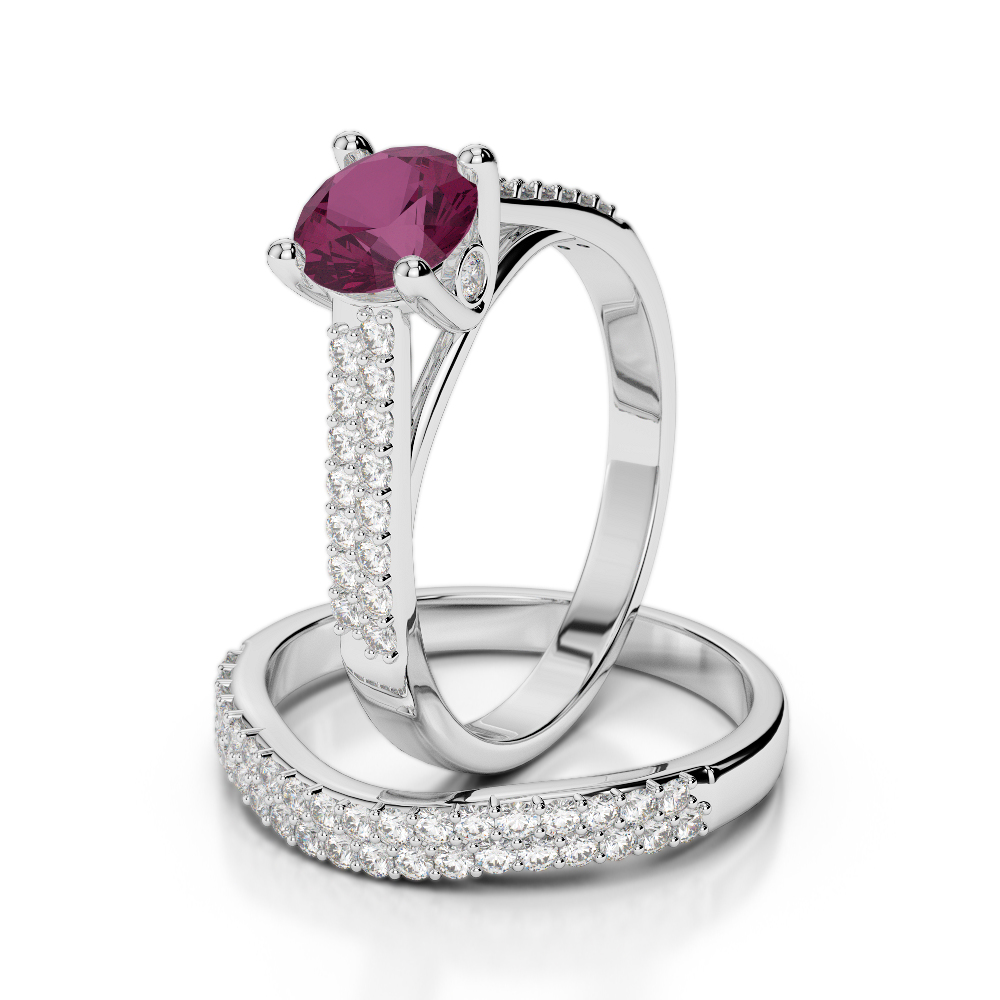 Double Row Prong Set Bridal Set Ring With Diamond & Ruby 0346