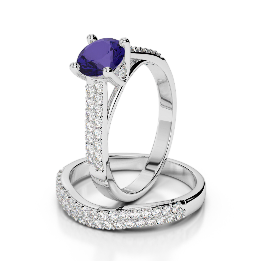 Double Row Prong Set Bridal Set Ring With Diamond & Tanzanite 0346