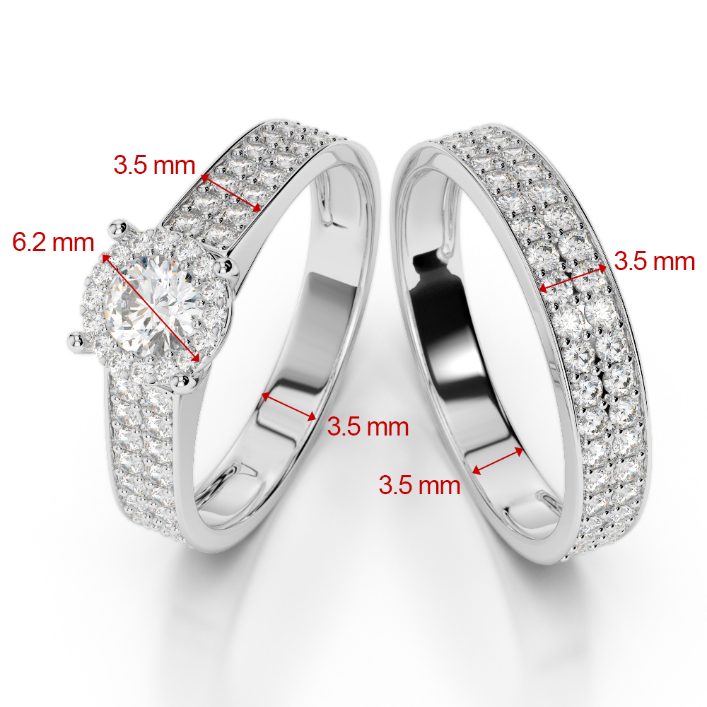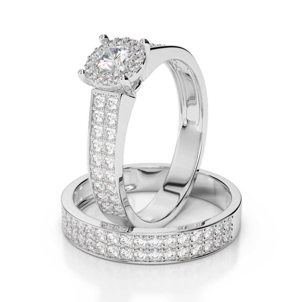 This exquisite diamond bridal set ring features beautiful stunning wedding rings adorned with shimmering diamonds set in pave settings. The pave setting adds a touch of sophistication and sparkle, making it a perfect choice for couples looking for a timeless and luxurious symbol of their love and commitment. Ideal for those seeking a classic yet modern design that will truly stand the test of time.