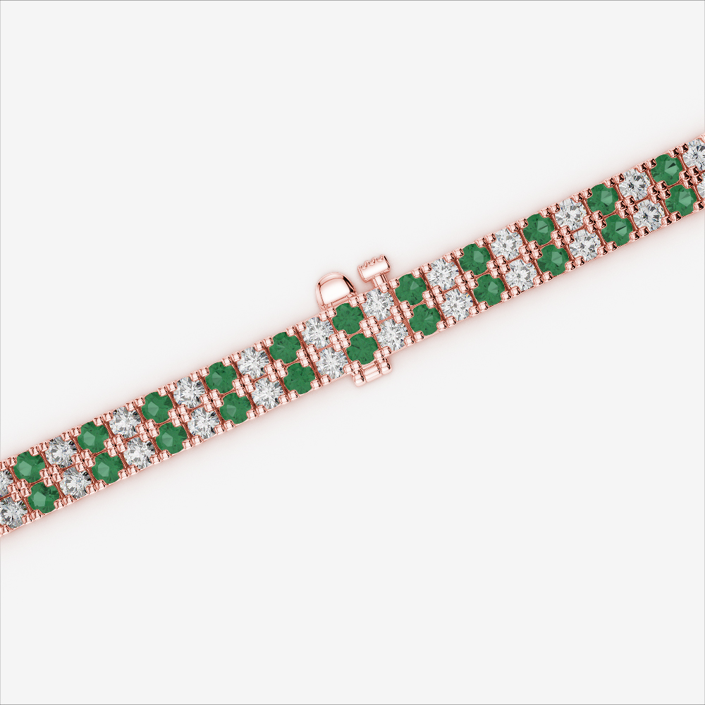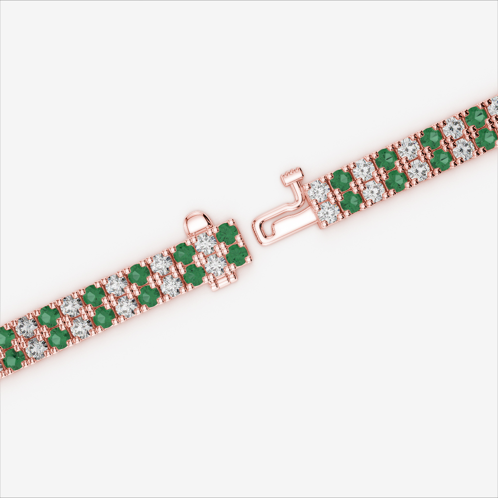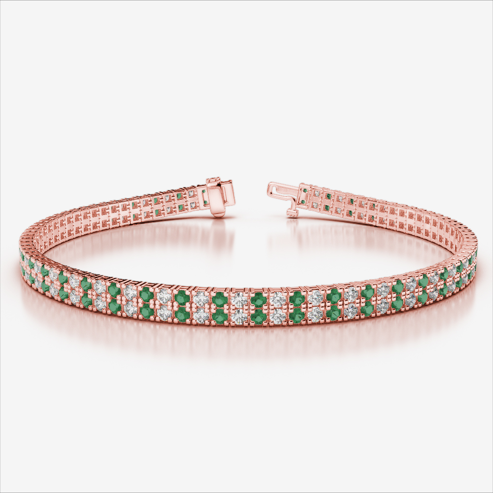 Double Row Prong Set Diamond & Emerald Bracelet 0749