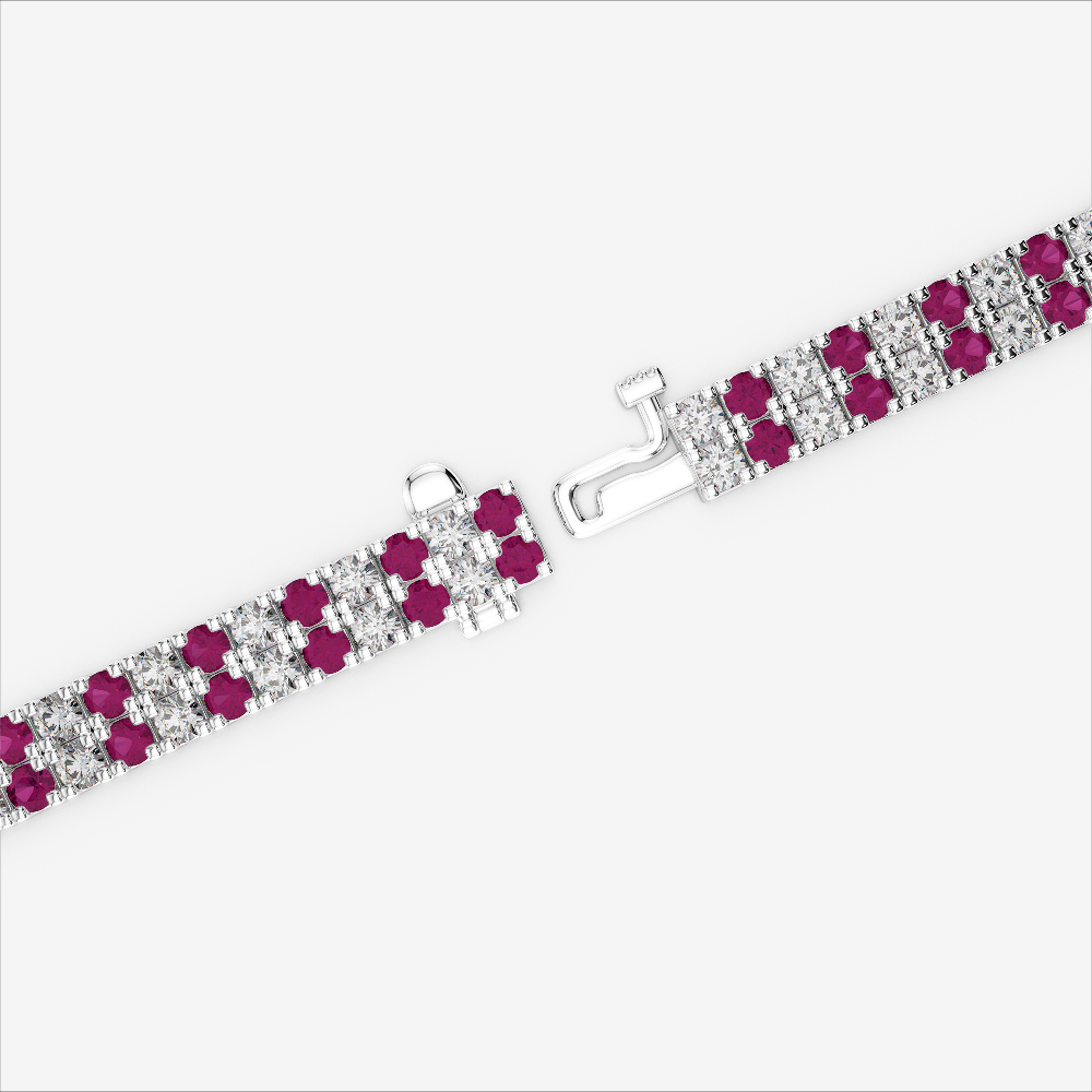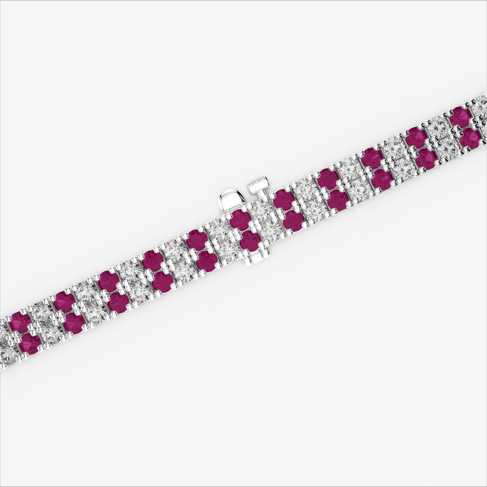 Double Row Prong Set Diamond & Ruby Bracelet 0749