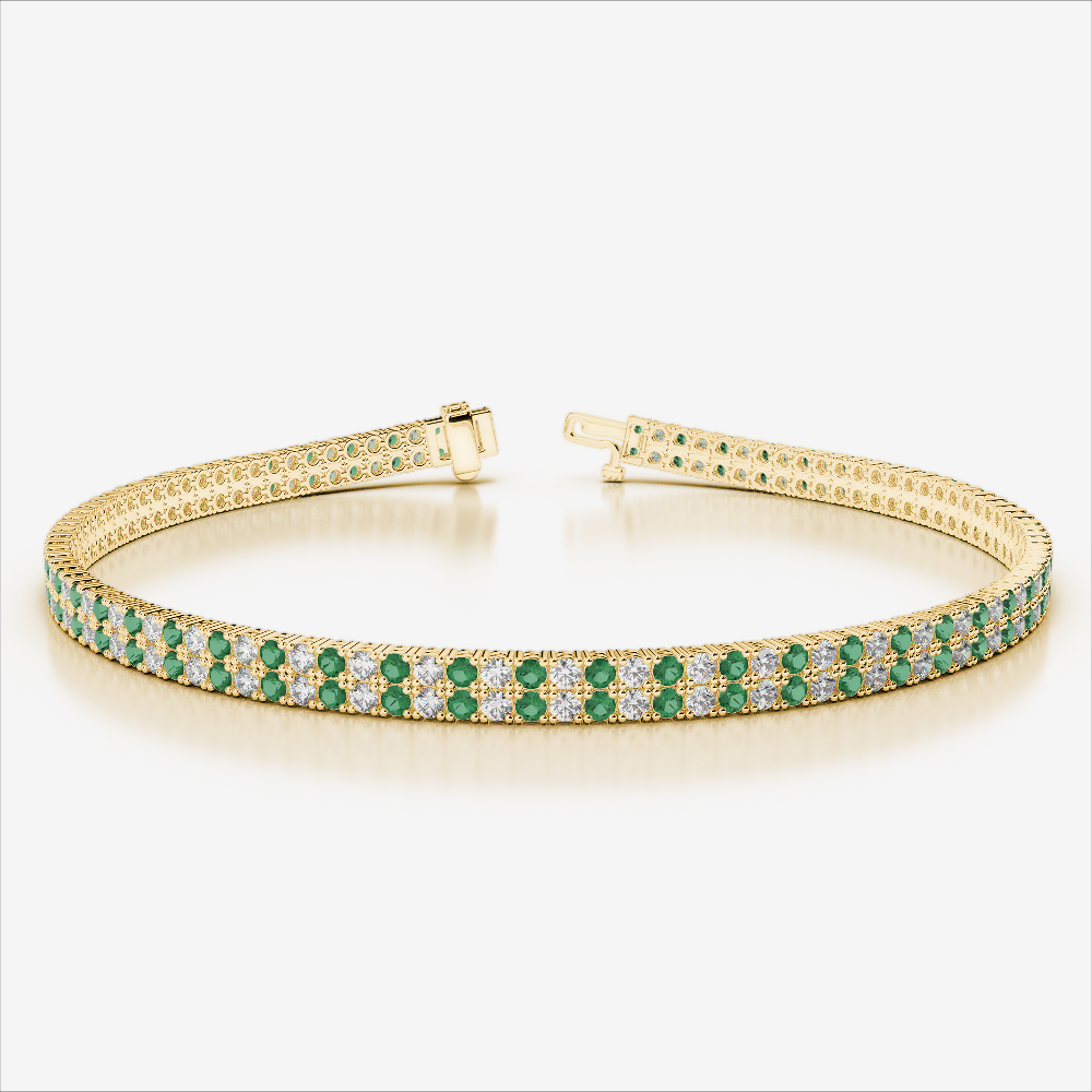 Double Row Prong Set Emerald & Diamond Bracelet 0737