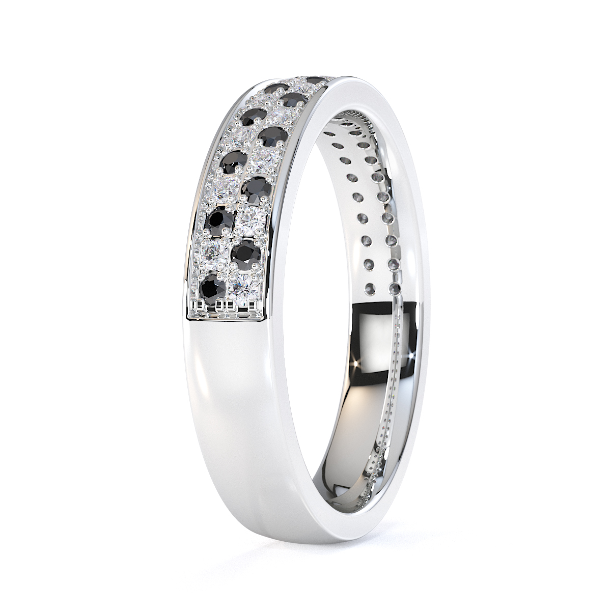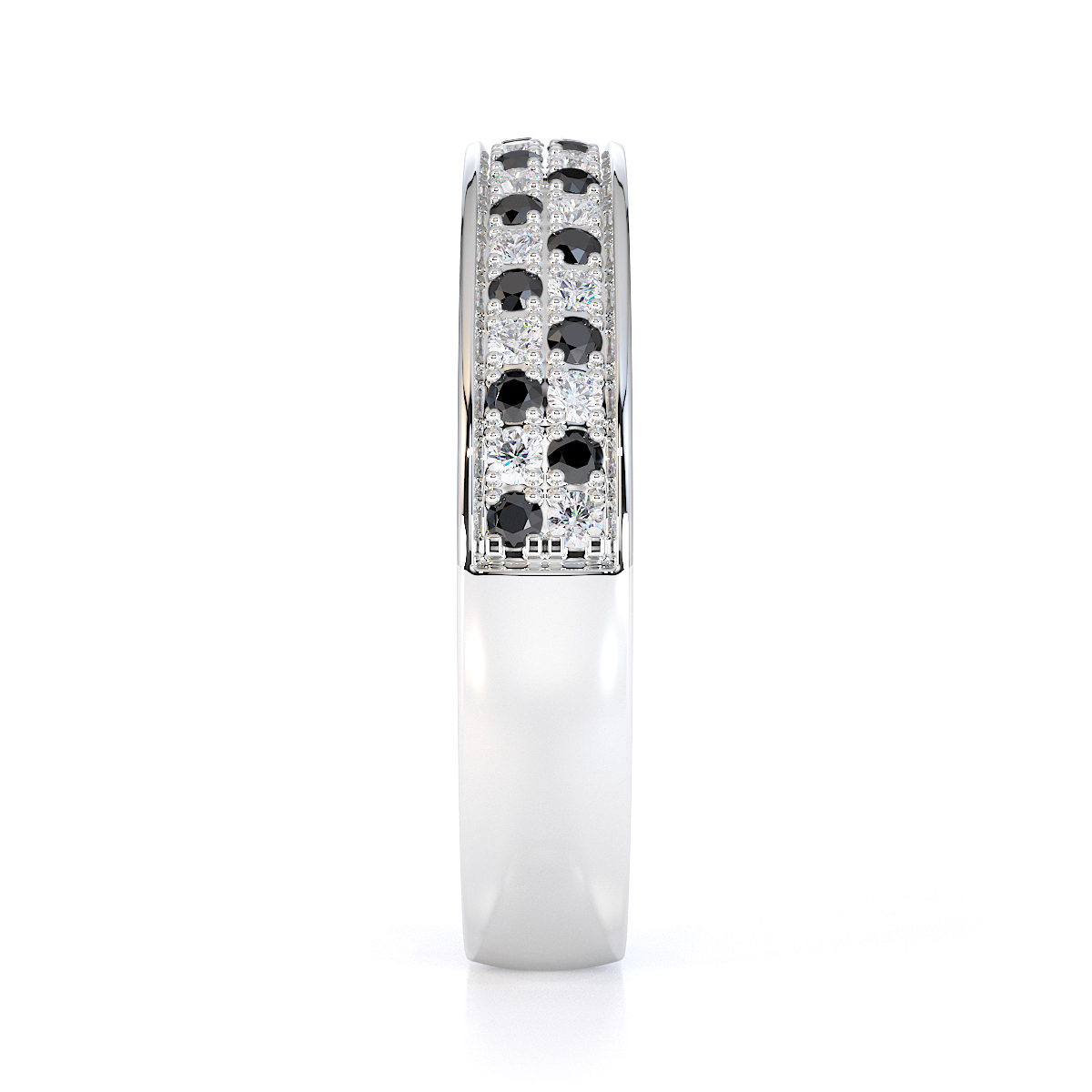 Double Row Round Cut Black Diamond Half Eternity Ring 0431
