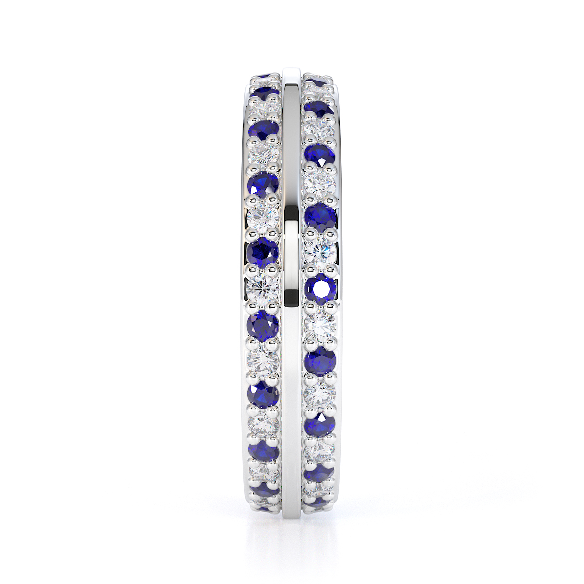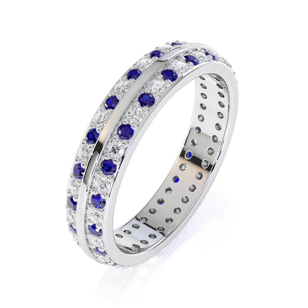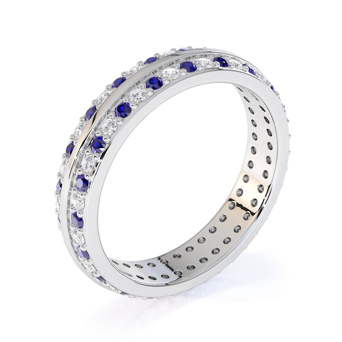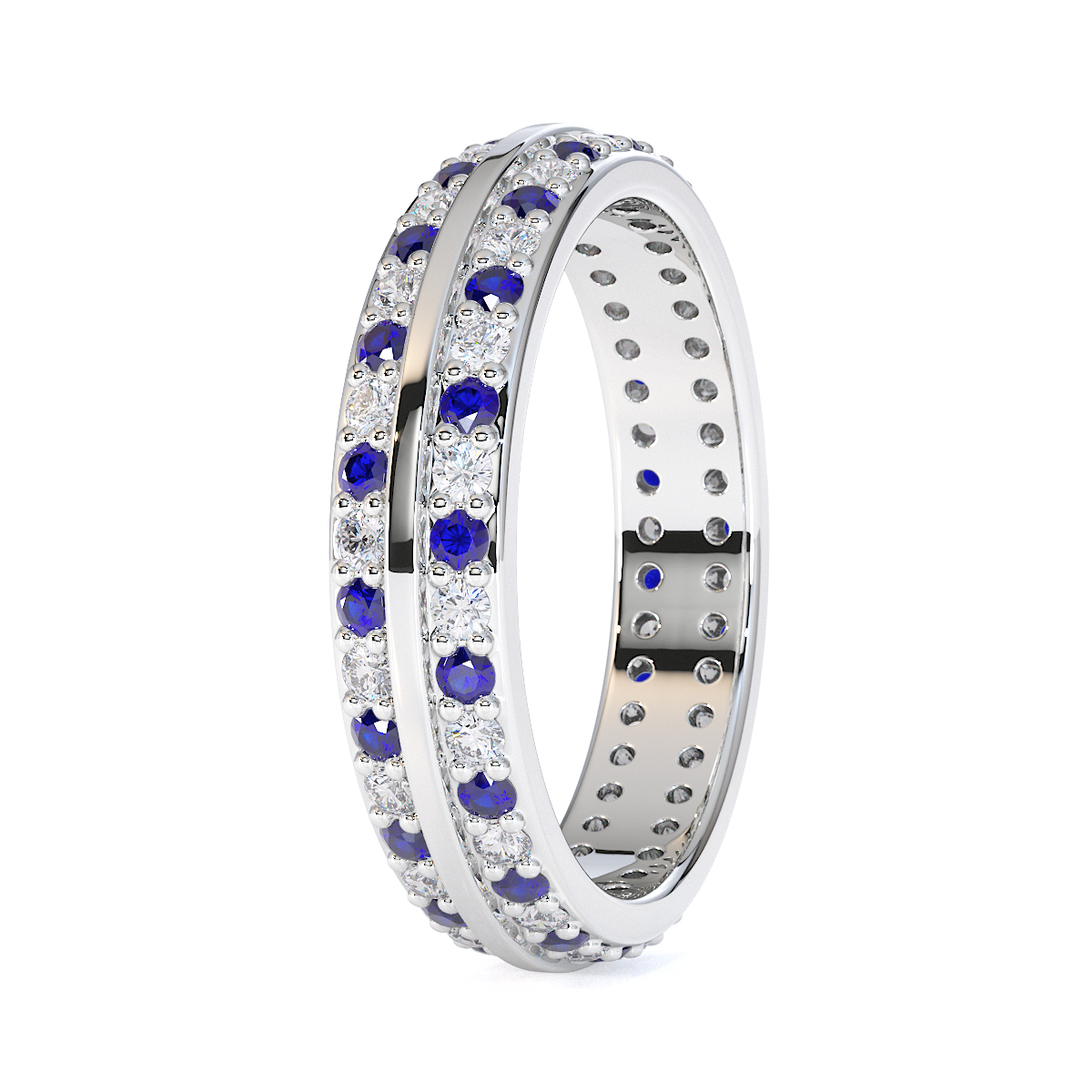 Double Row Round Cut Diamond and Blue Sapphire Full Eternity Ring 0428