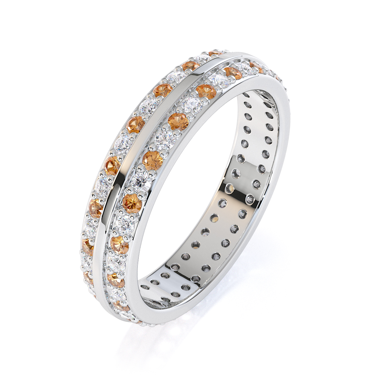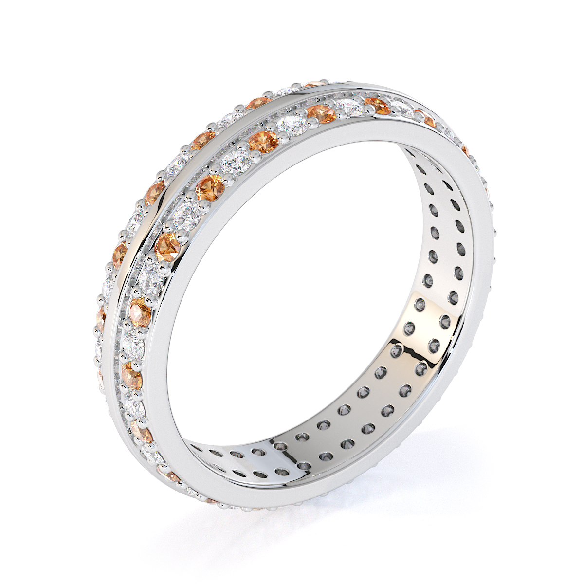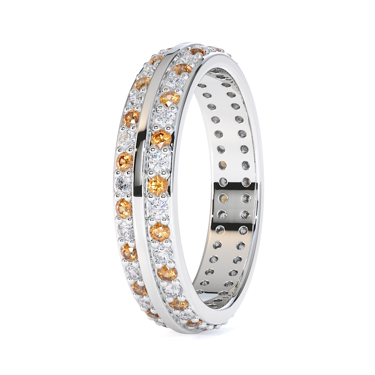 This eternity ring features a stunning combination of citrines and diamonds, with a prong setting for secure placement. Crafted with meticulous attention to detail, it symbolises eternal love and commitment on your special day, ensuring maximum light and brilliance.