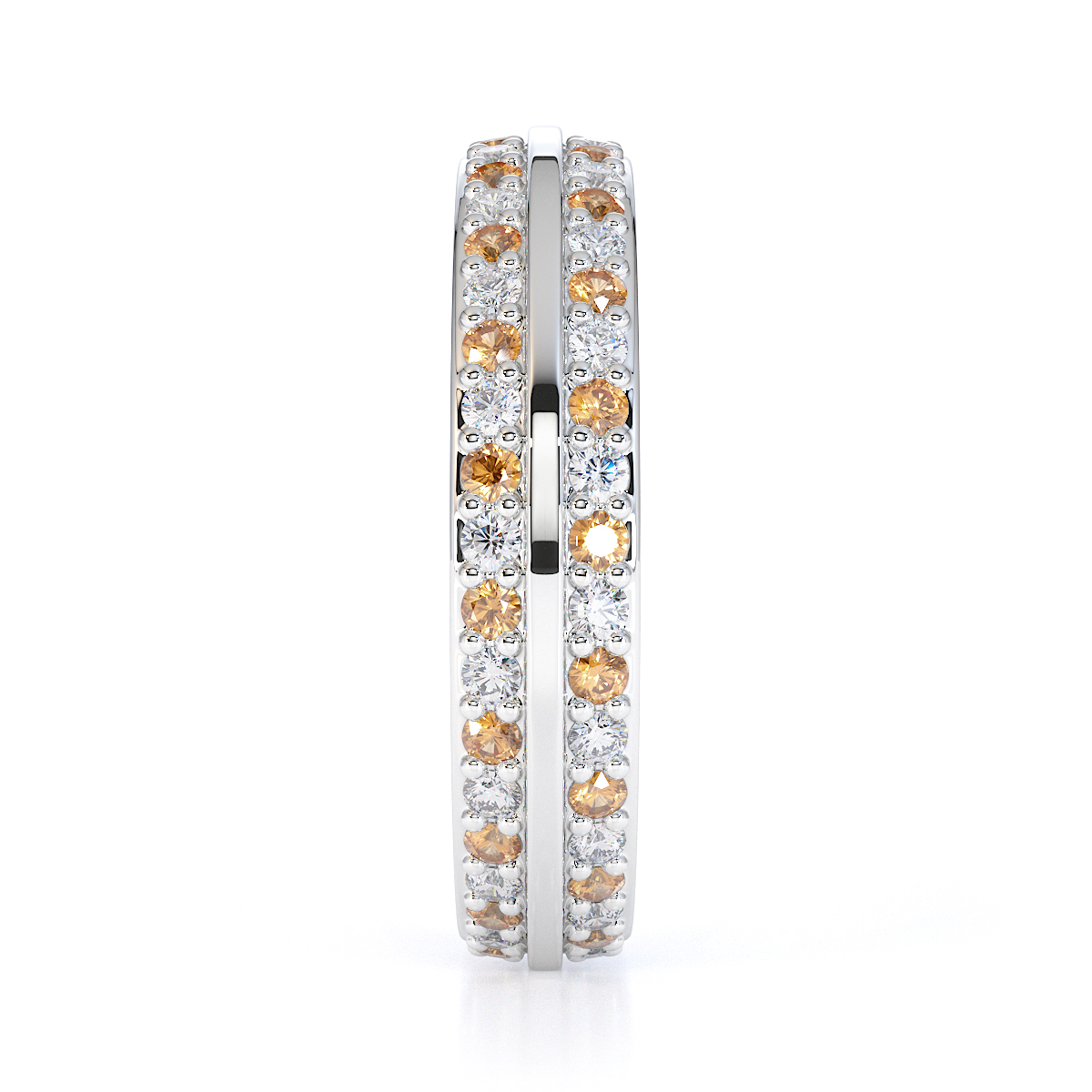 Double Row Round Cut Diamond and Citrine Full Eternity Ring 0428