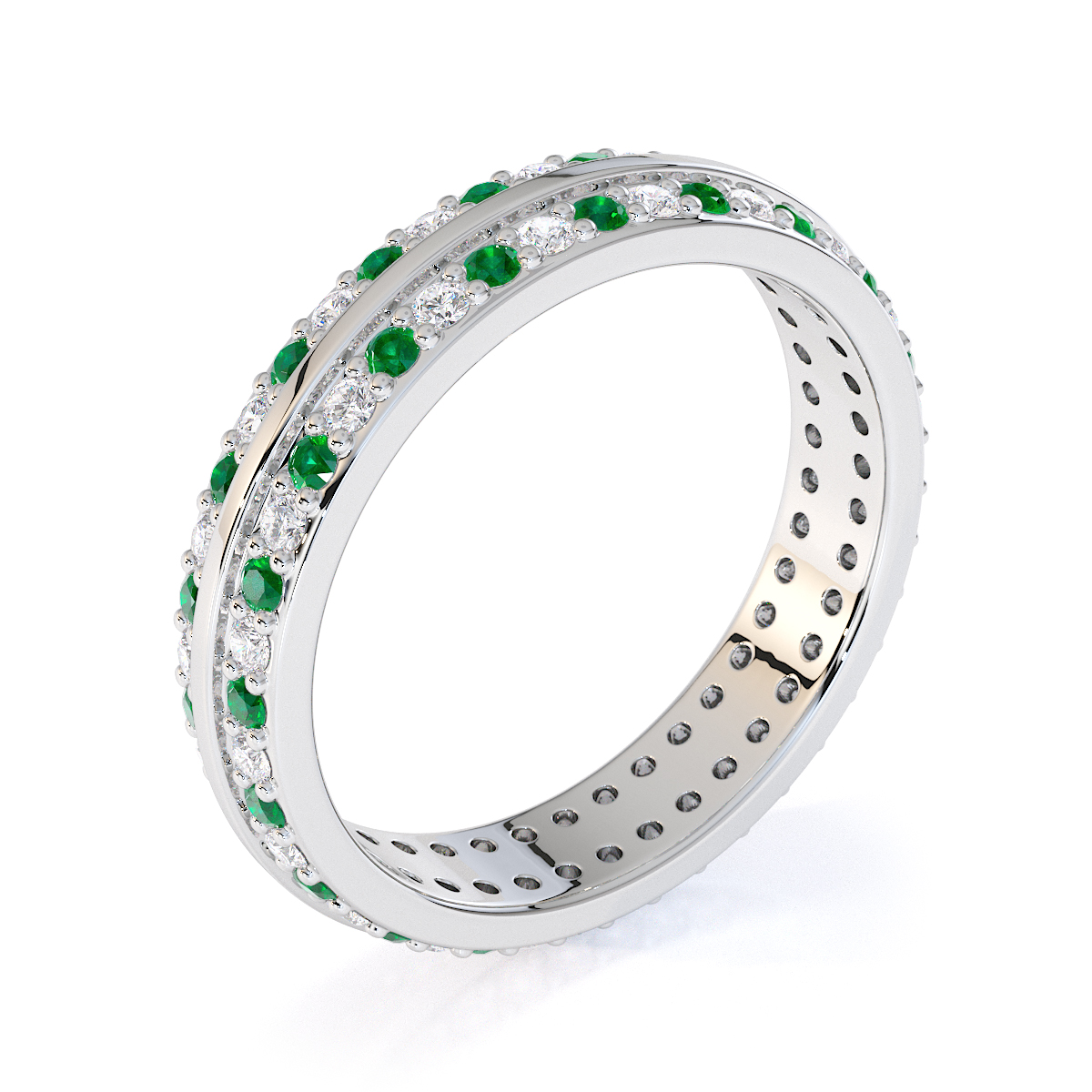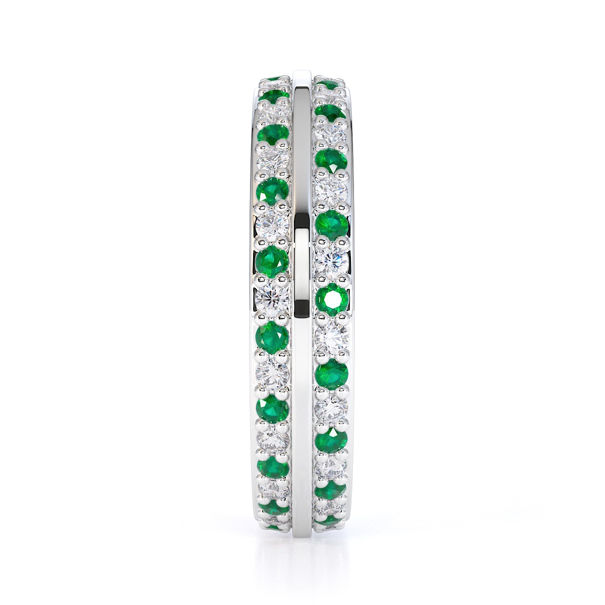 Double Row Round Cut Diamond and Emerald Full Eternity Ring 0428
