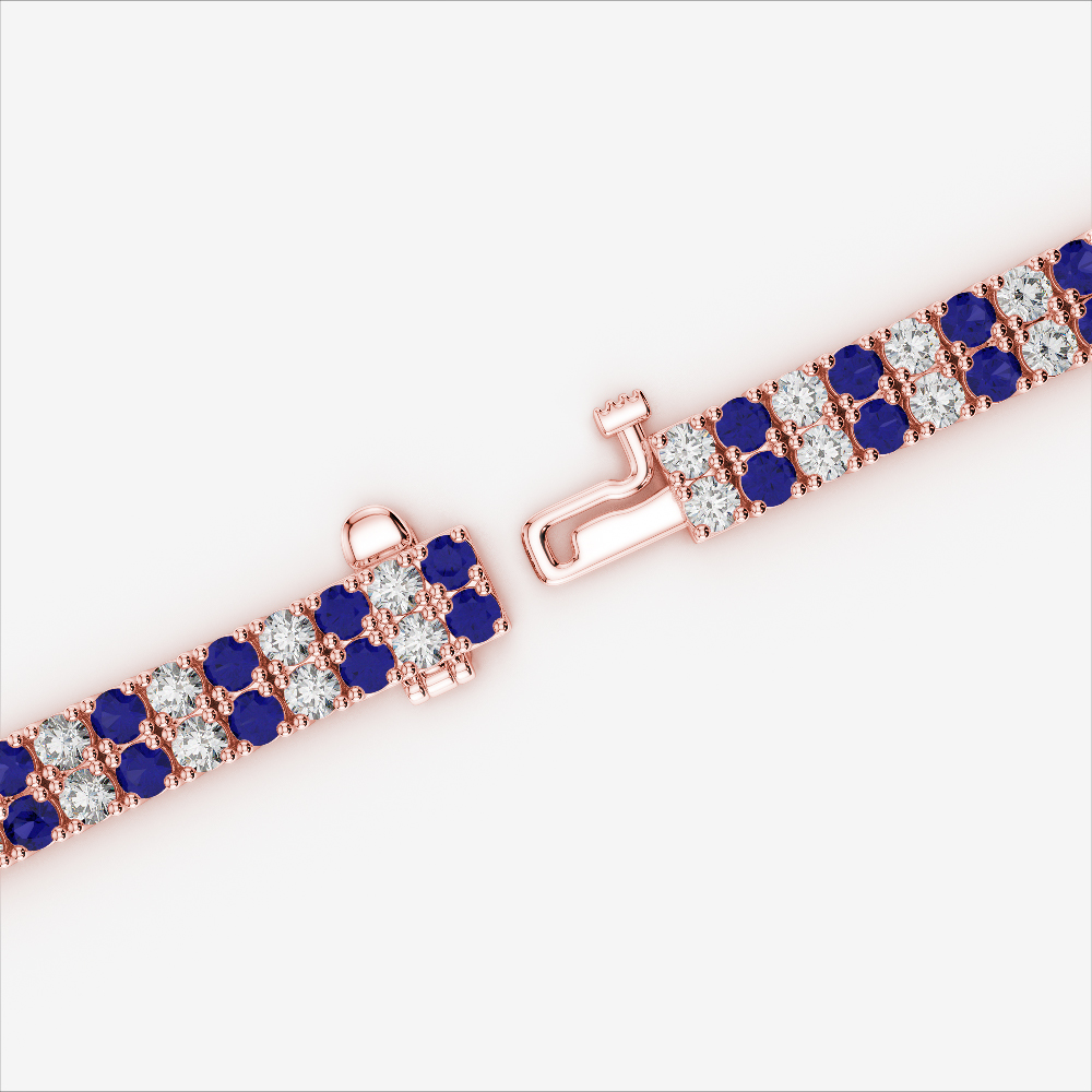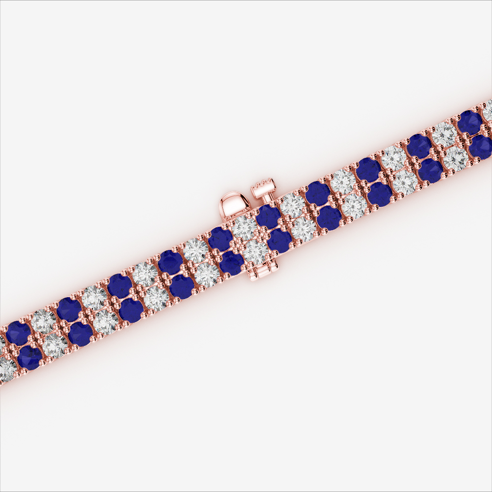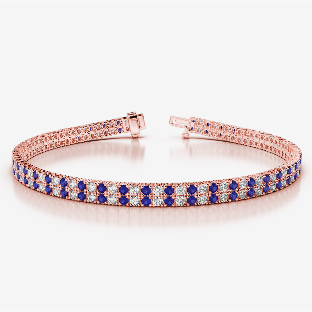 Double Row Round Cut Diamond & Blue Sapphire Bracelet 0738