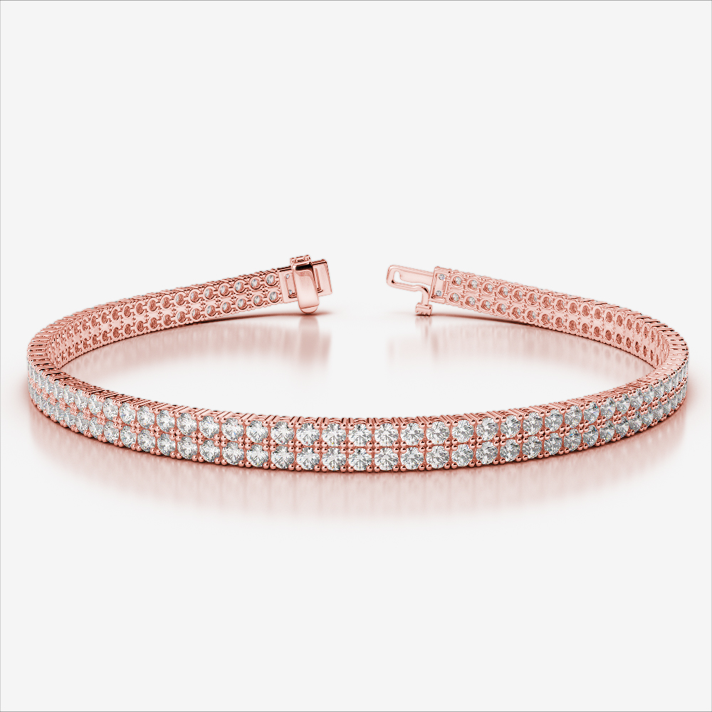 This Double Row Prong Set Round Cut Diamond Tennis Bracelet is a refined expression of luxury. Each diamond is hand-selected for brilliance, forming a continuous, sparkling band that embodies timeless grace and exquisite craftsmanship.