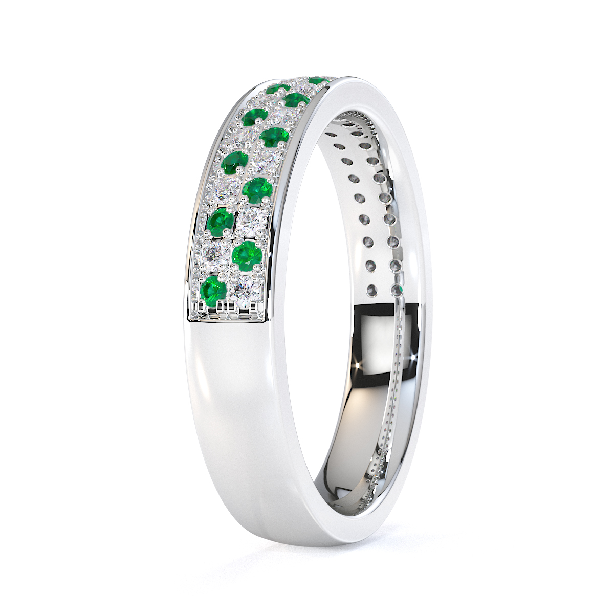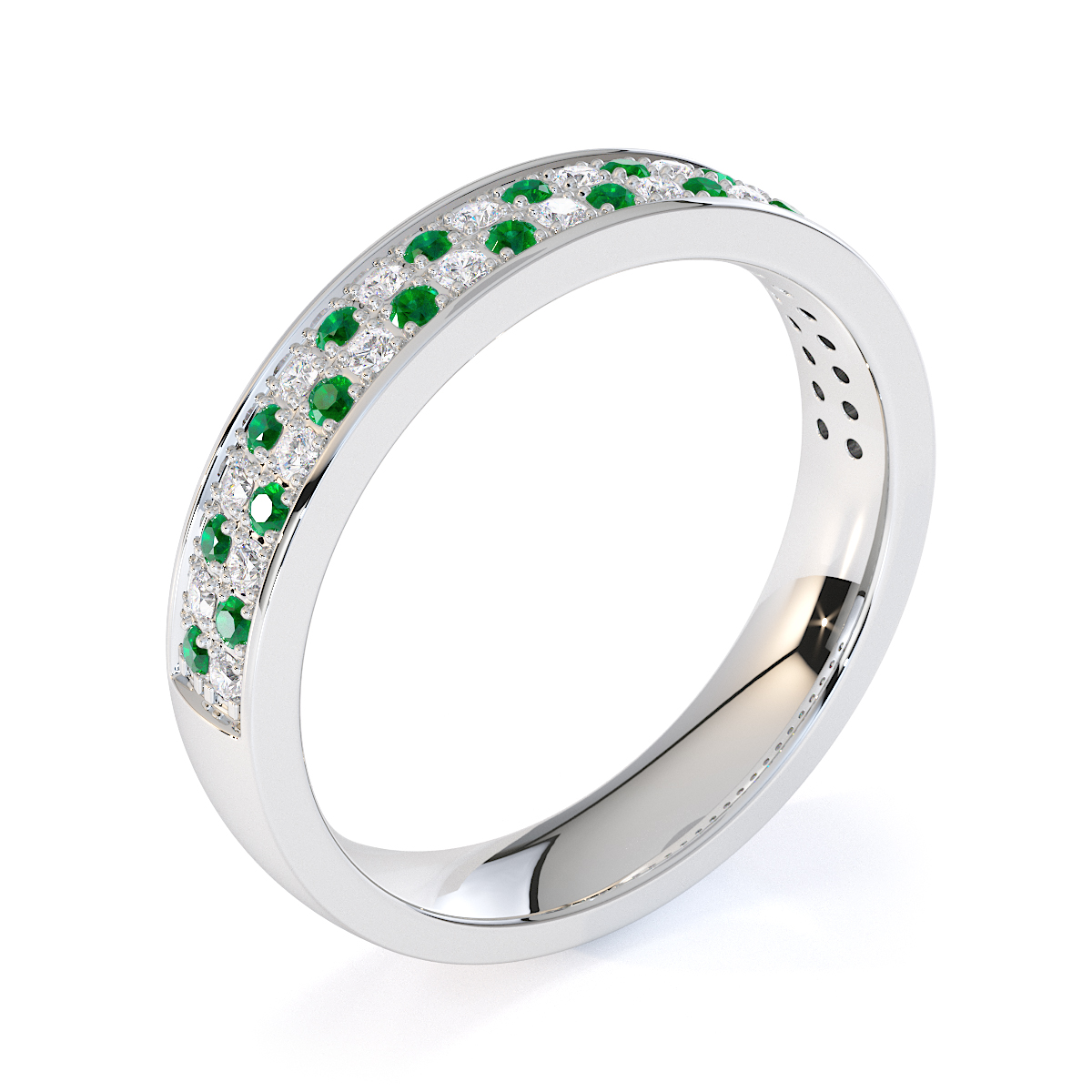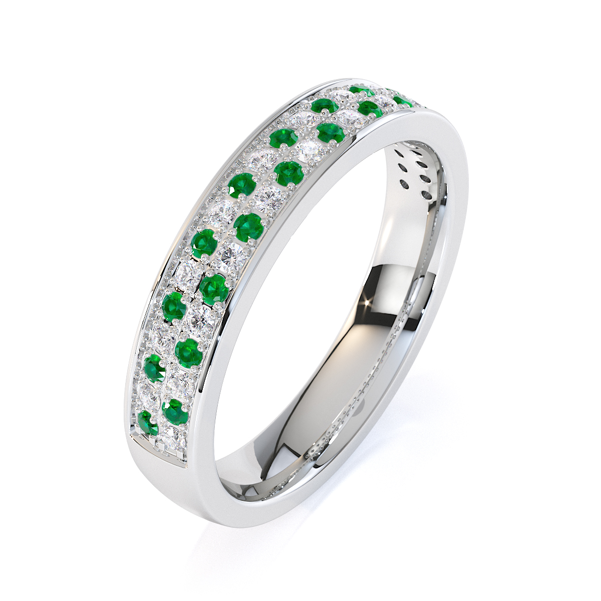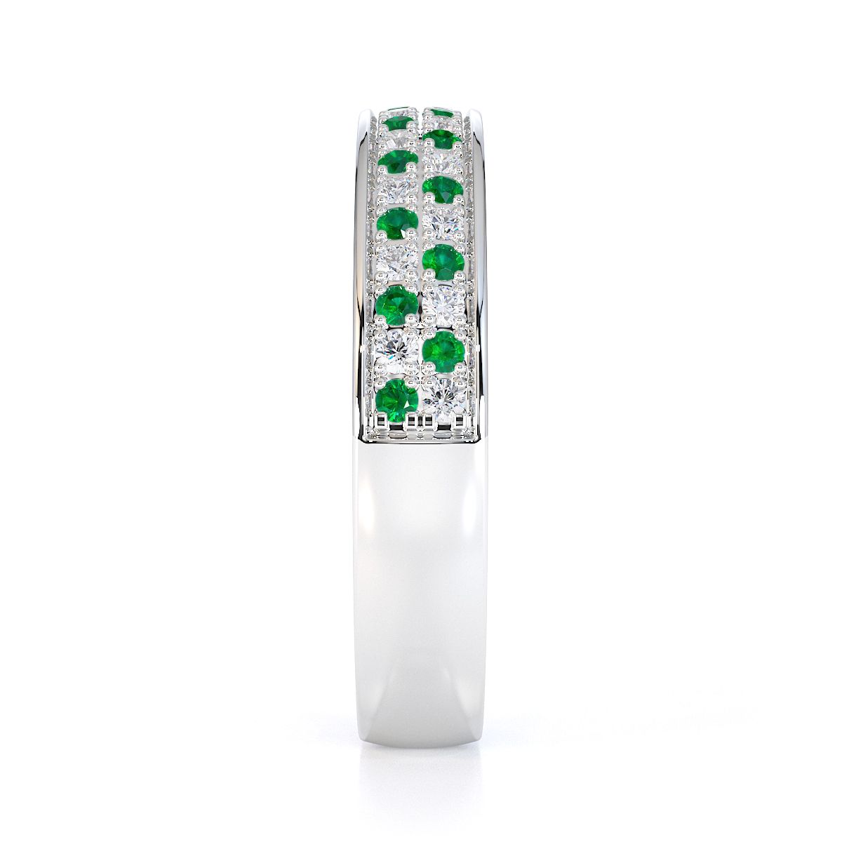 Double Row Round Cut Diamond & Emerald Half Eternity Ring 0431