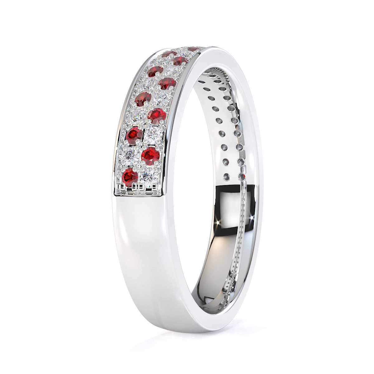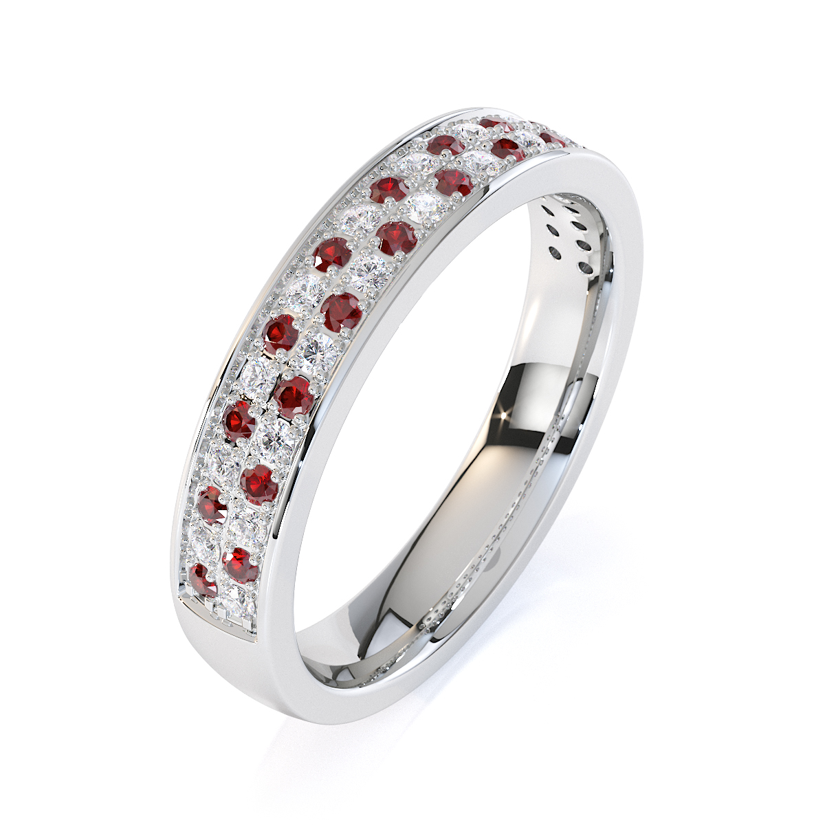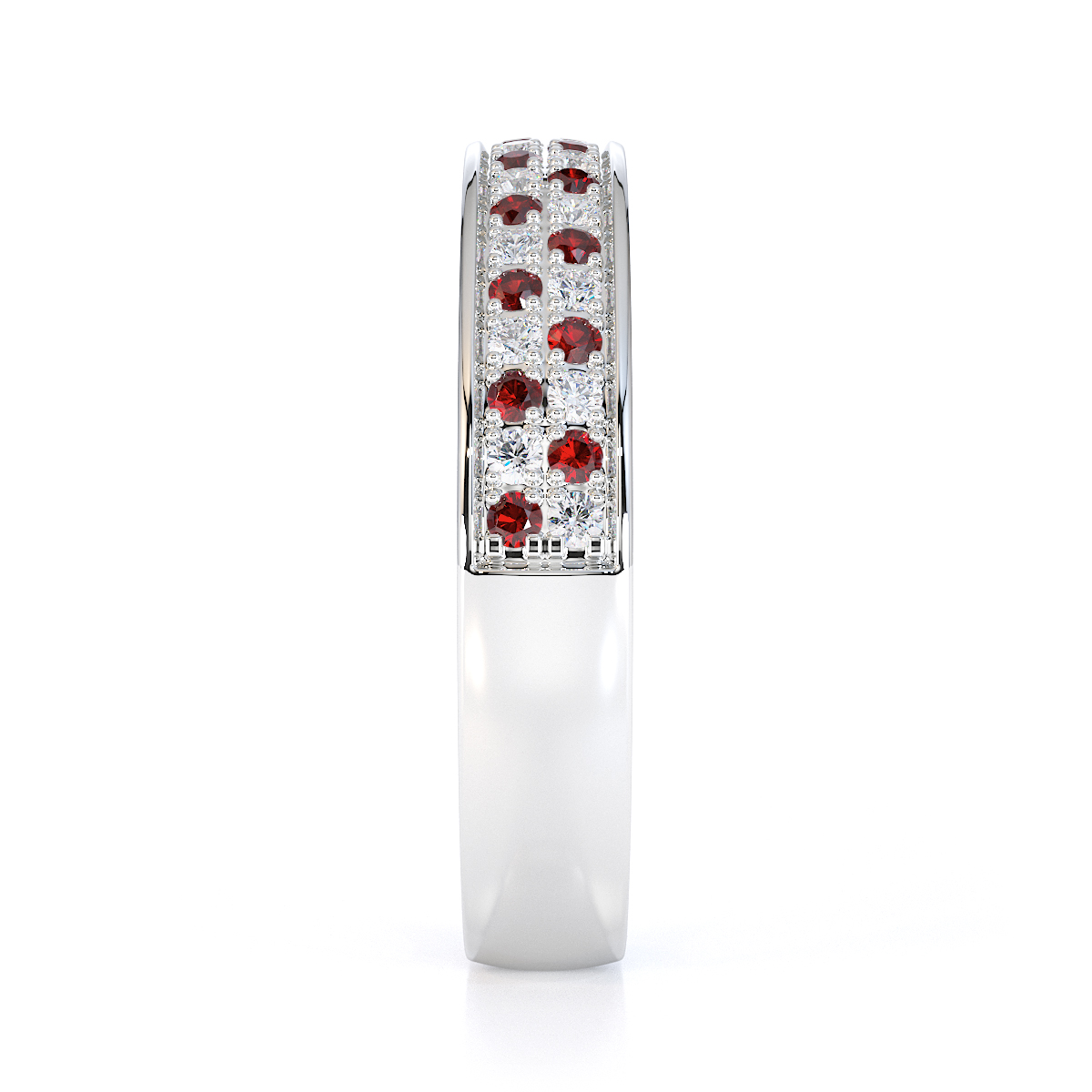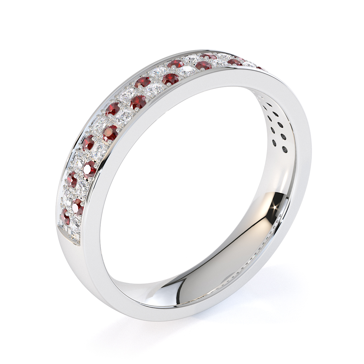 Double Row Round Cut Diamond & Garnet Half Eternity Ring 0431