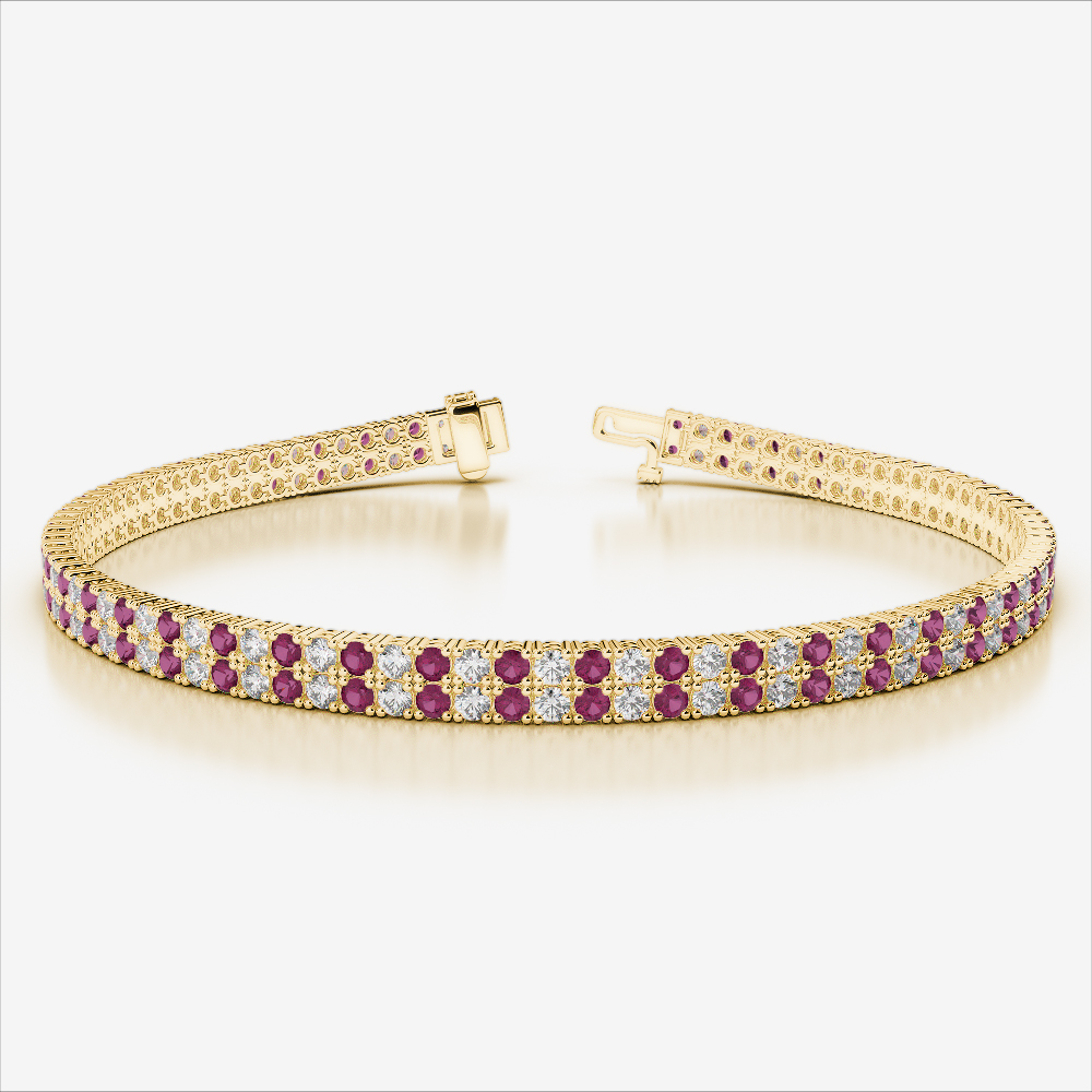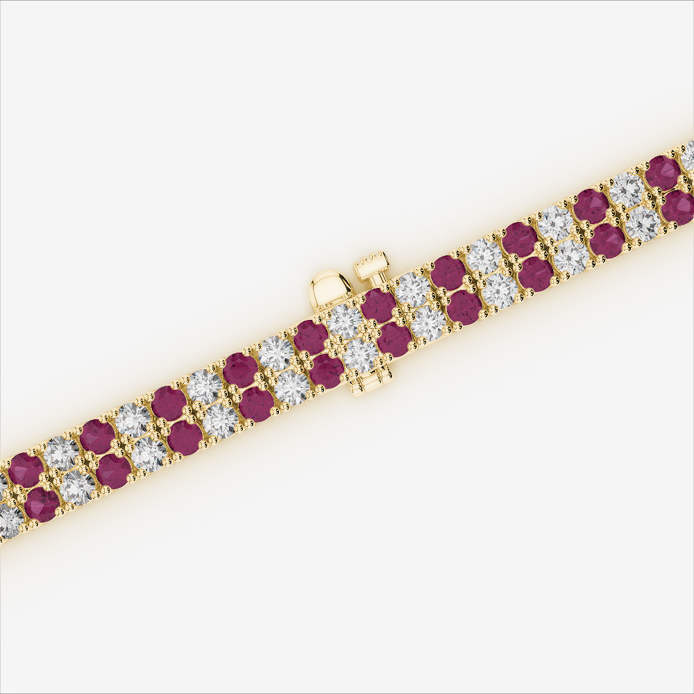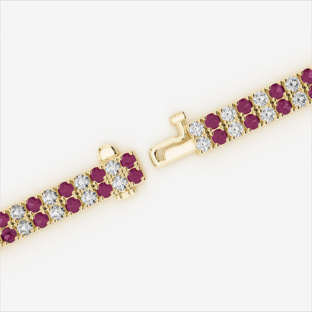 Double Row Round Cut Diamond & Ruby Bracelet 0738