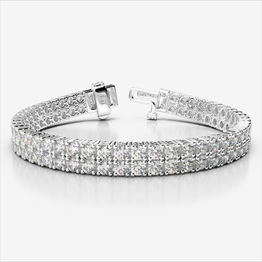 Simple yet luxurious, this Double Row Prong Set Round Cut Diamond Tennis Bracelet is adorned with diamonds chosen for maximum brilliance. It’s the perfect way to celebrate elegance in its most refined form.