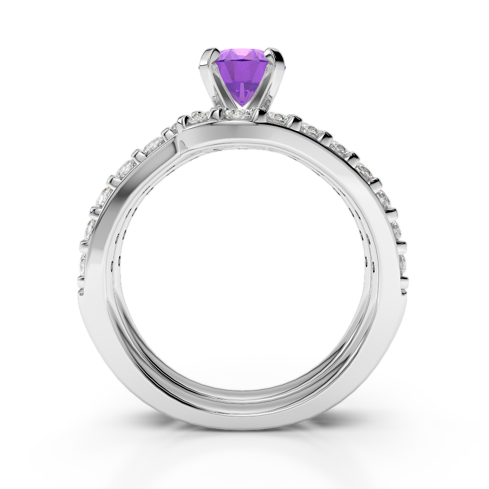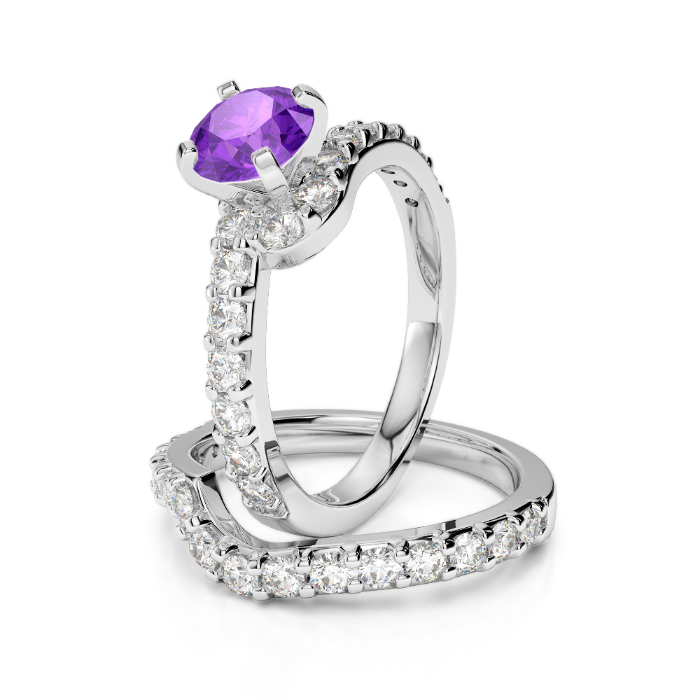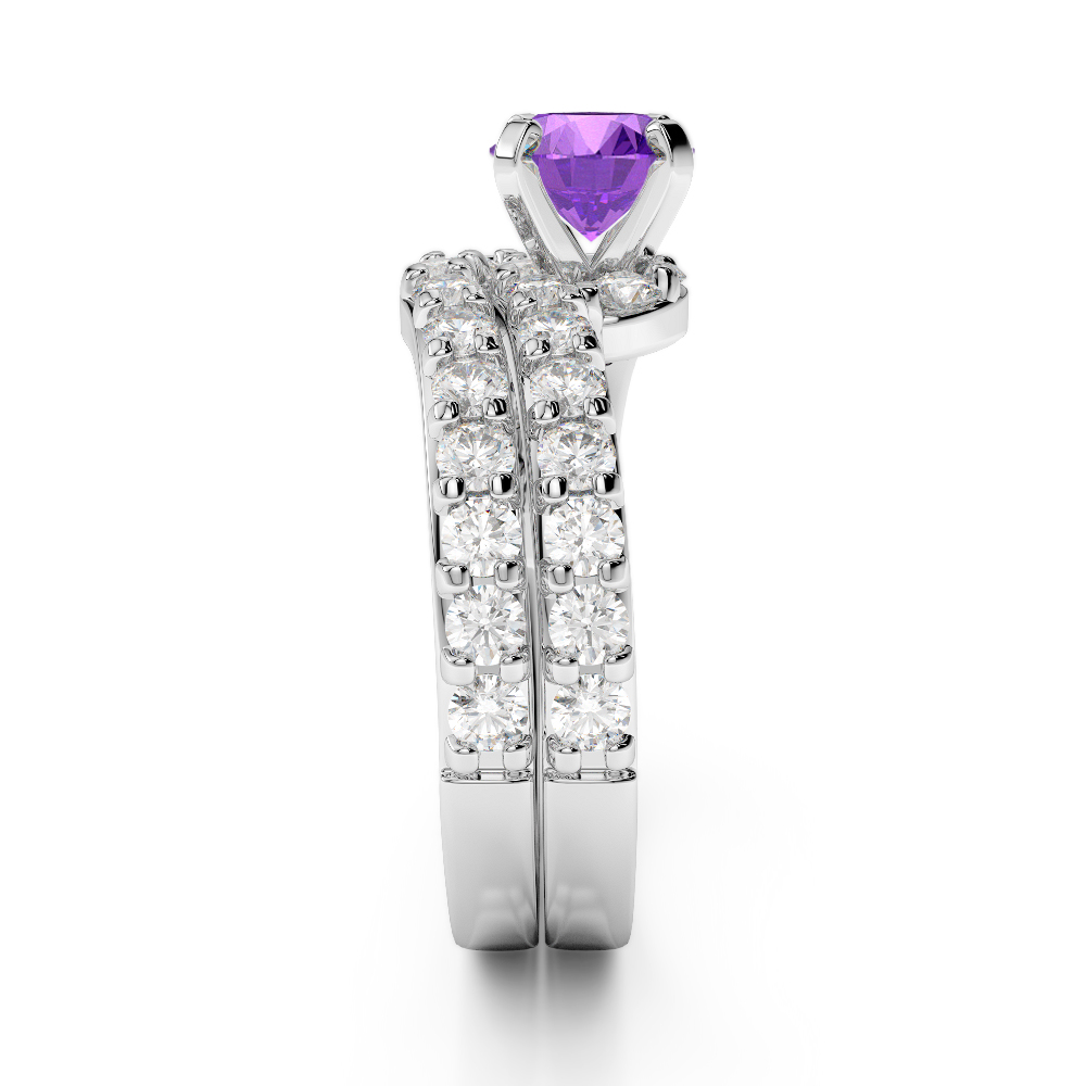 Four Claw Set Amethyst Bridal Set Ring With Diamond 0325