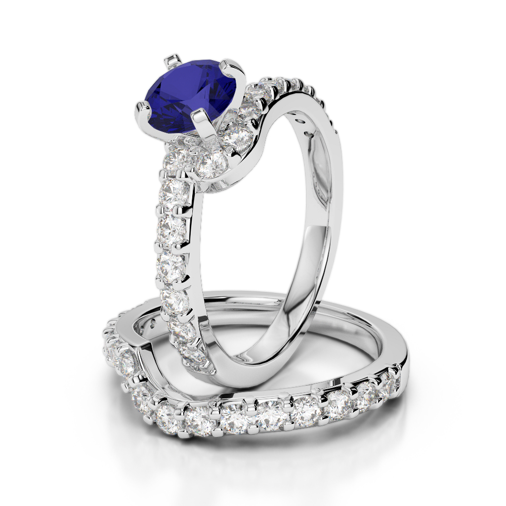 Four Claw Set Blue Sapphire Bridal Set Ring With Diamond 0325