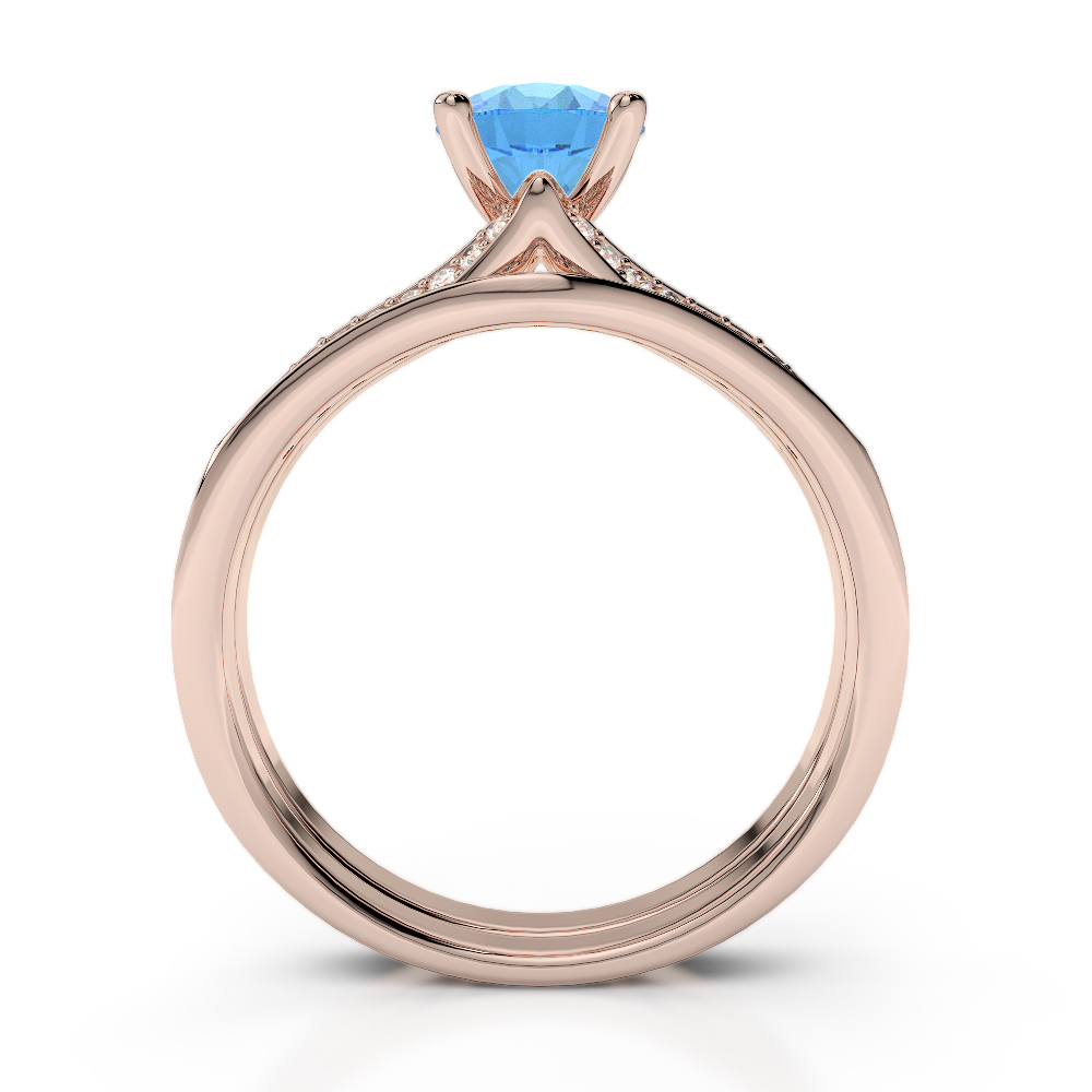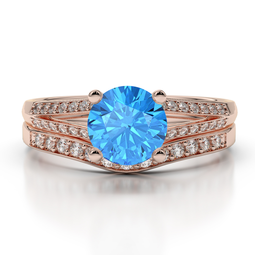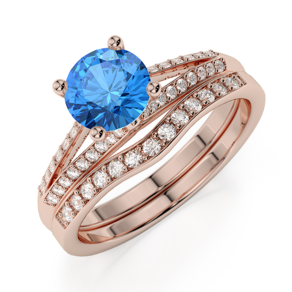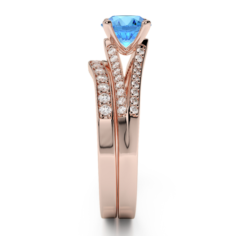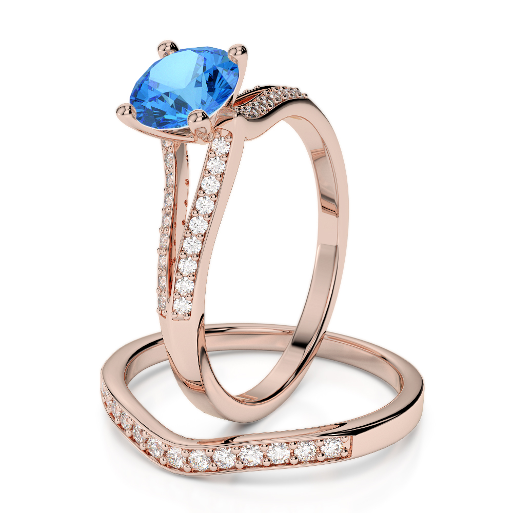 Four Claw Set Blue Topaz Bridal Set Ring With Diamond 0342