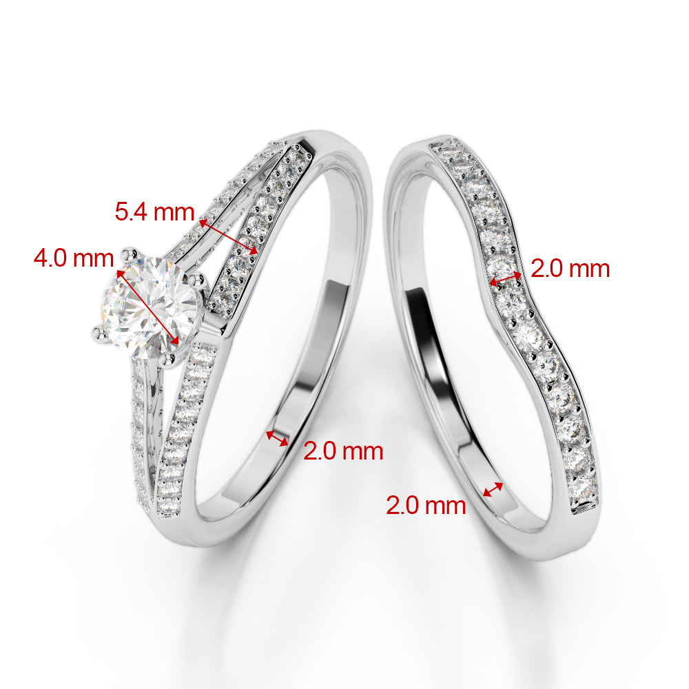 These stunning diamond bridal set rings are perfect for those who adore diamonds that sparkle and shine. The bridal set features a round brilliant-cut diamond, further enhanced by additional diamonds. The shoulder is also adorned with an array of diamonds, all expertly set in a combination of prong and scallop settings for added elegance. The bridal set fits perfectly into the wedding ring, creating a stunning effect that provides interest and high impact. These naturally mined, conflict-free diamonds are beautifully designed to add comfort and style to your look.