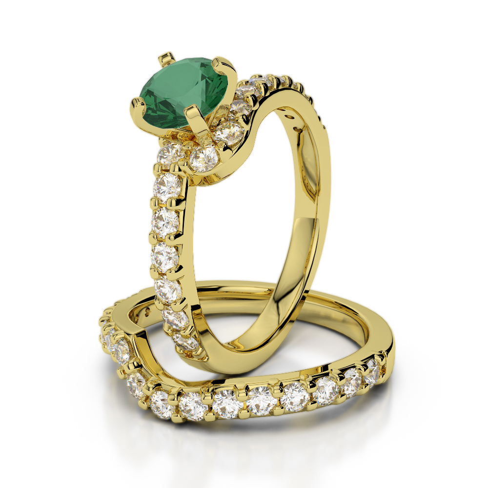 Four Claw Set Emerald Bridal Set Ring With Diamond 0325