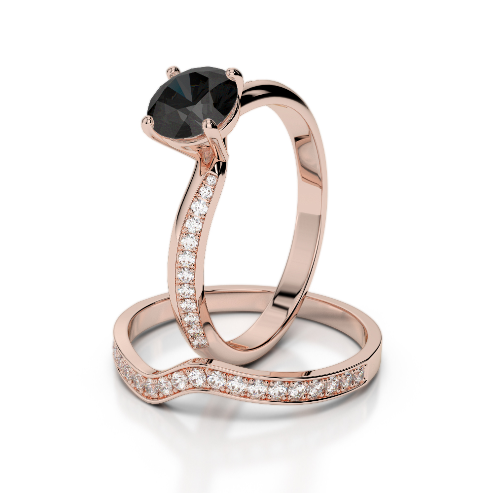 Four Prong Set Black Diamond Bridal Set Ring 0332