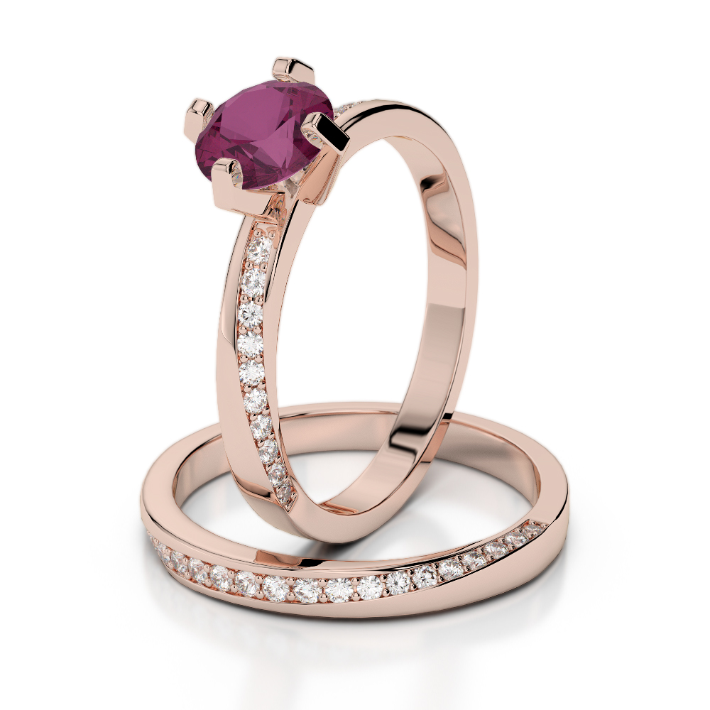 Four Prong Set Ruby Bridal Set Ring With Diamond 0324